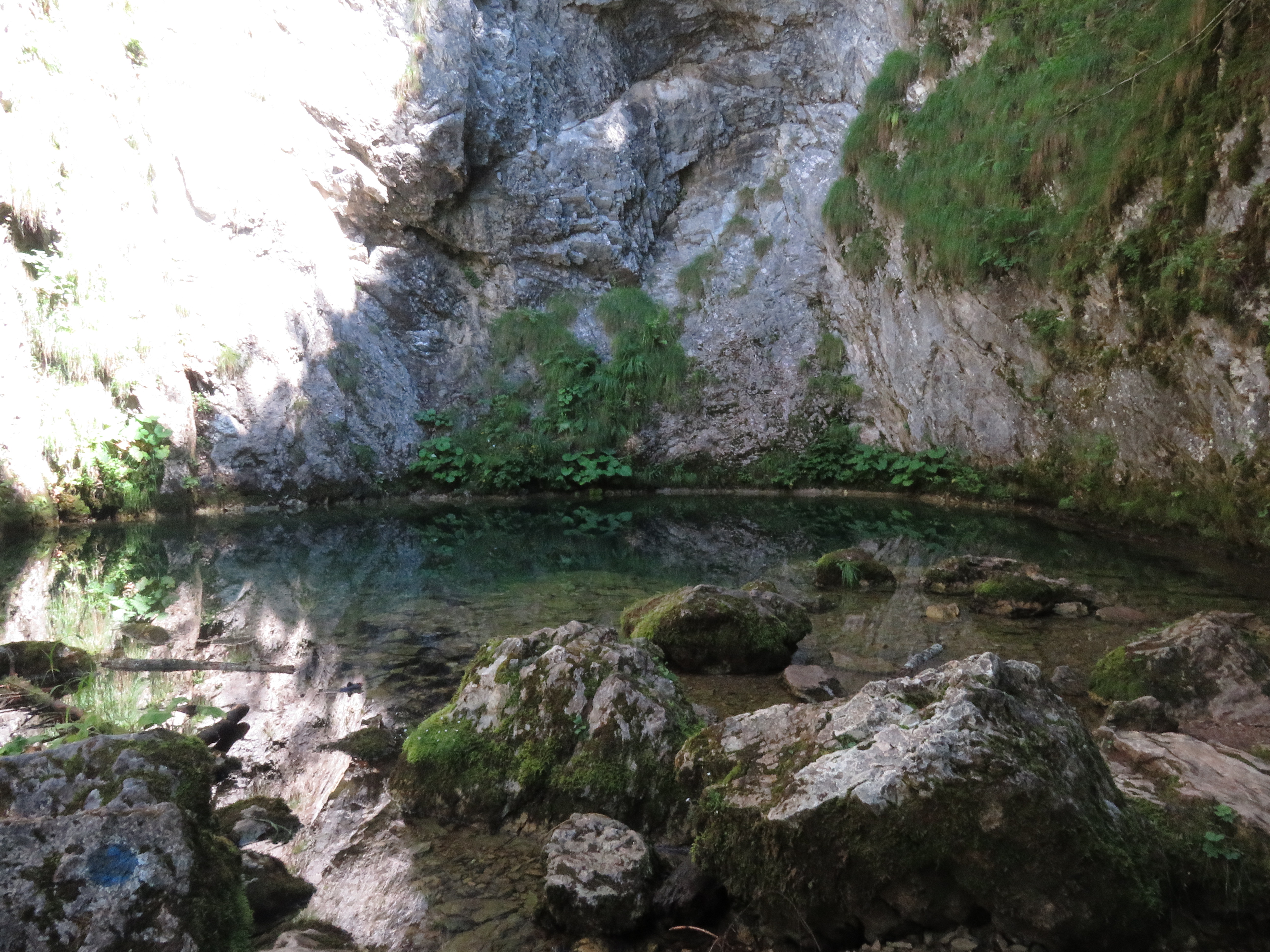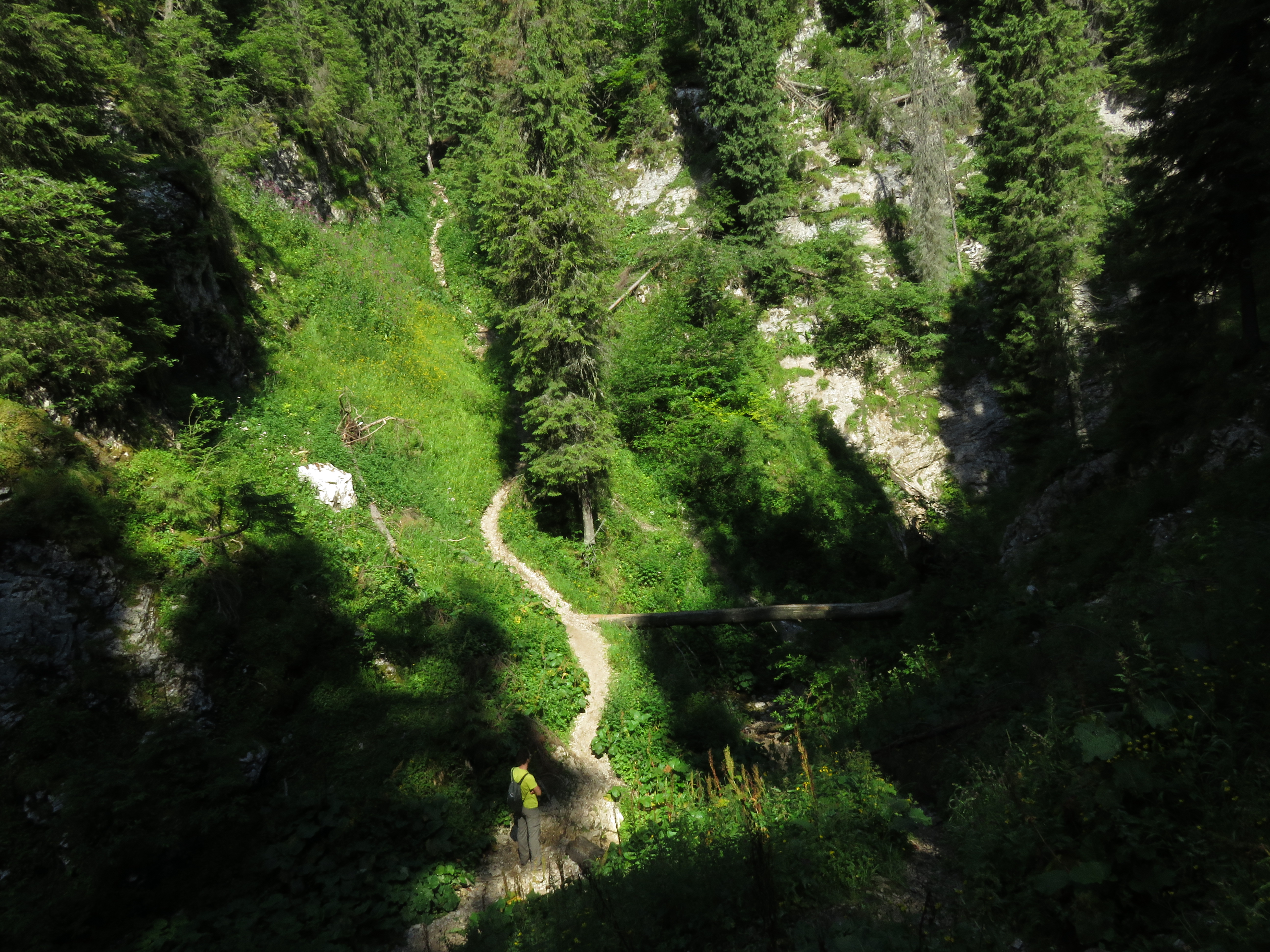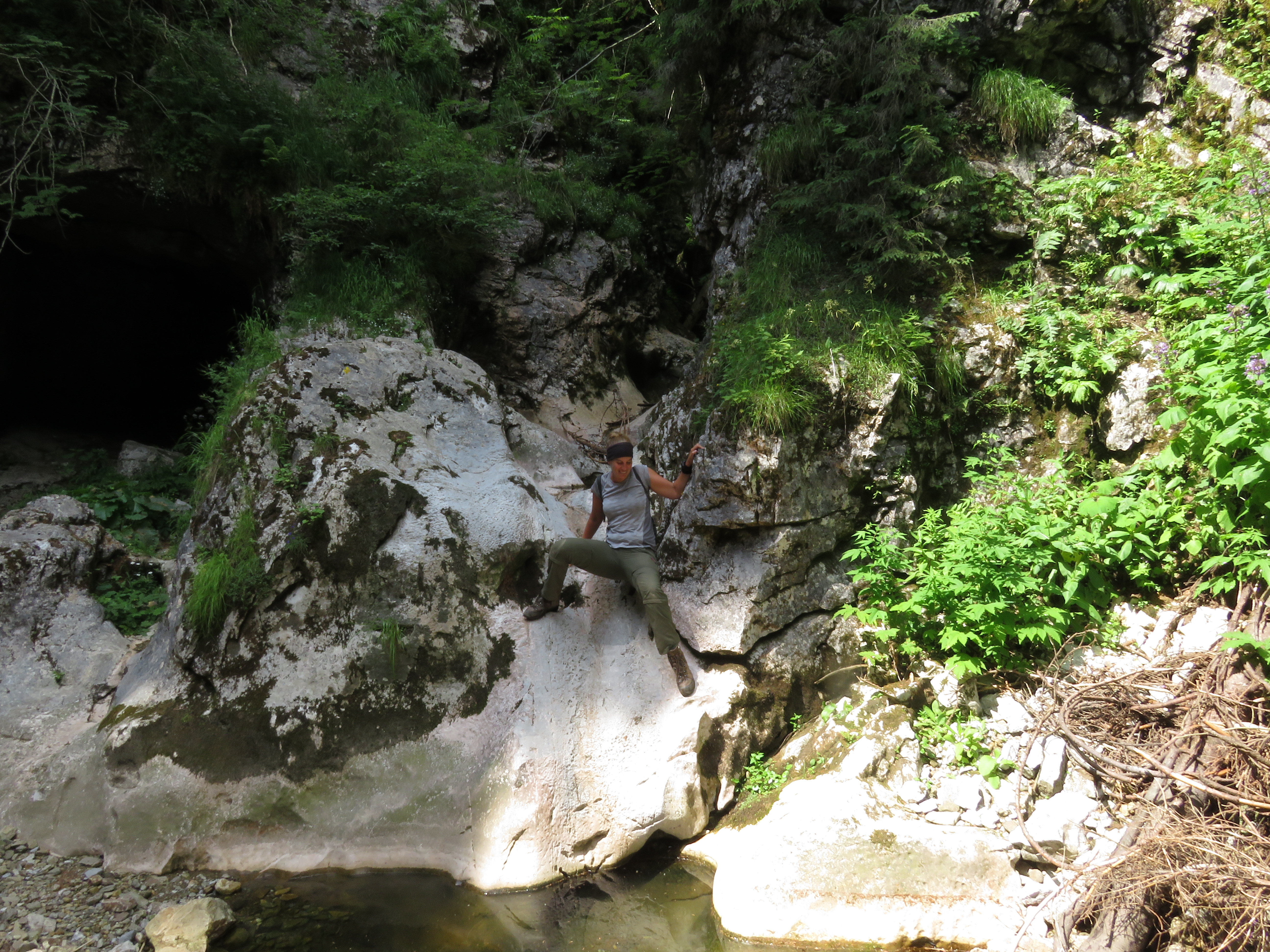 It is possible to visit Tunelul Mic, ‘the small tunnel’, here, but it’s a bit hard to find; essentially, when you have to cross the stream a second time, you have to follow it to the left and climb over some boulders. The tunnel really is small, but if you want to have some fun on the trail you can try to crawl through it. Watch out to not fall into the ‘bath’ at the end of the tunnel though. 😉