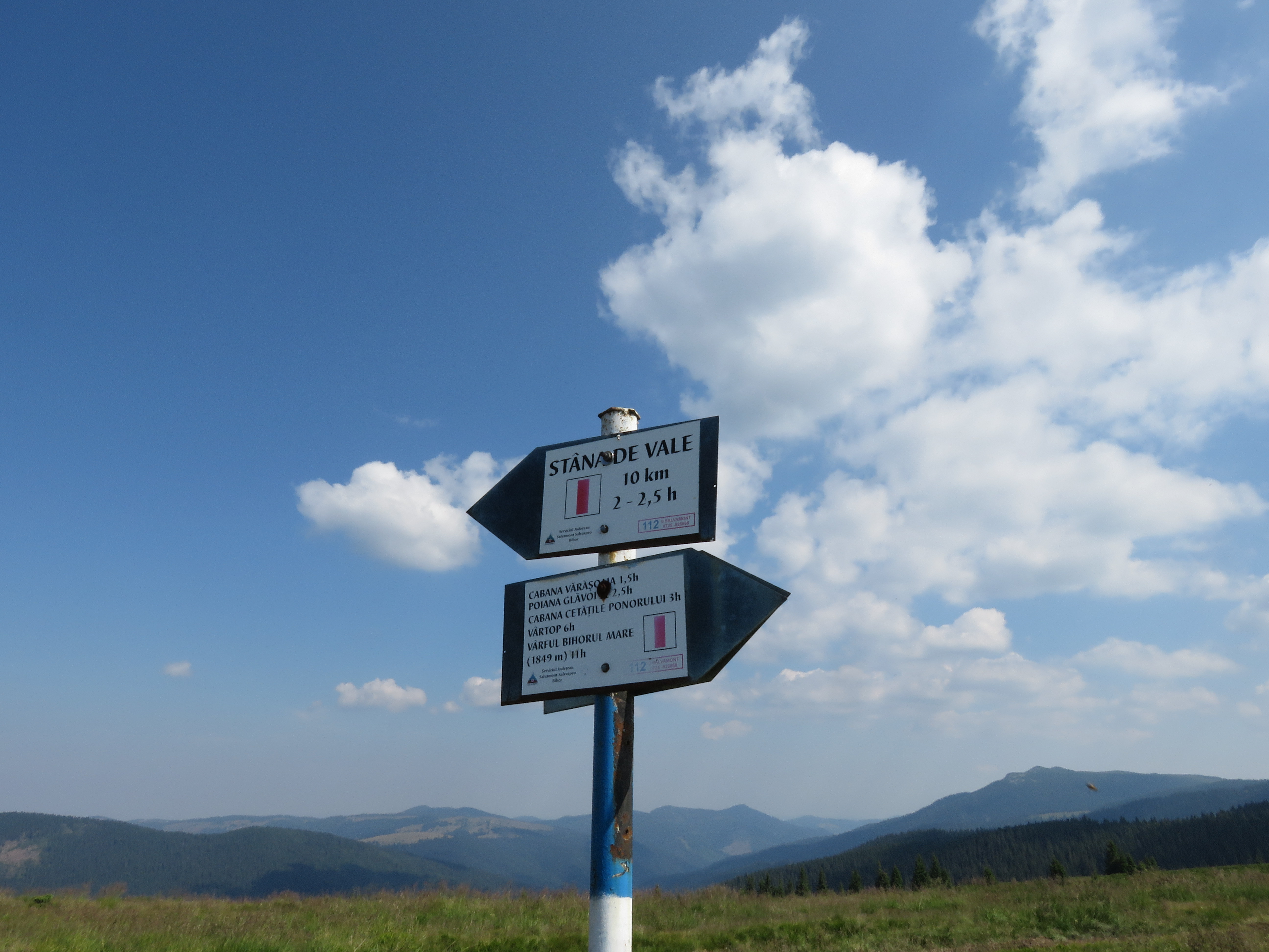 This is an easy exit route out of the Apuseni. I’ll try to keep the description short since this has become a bit of a lengthy post. Turn left onto the gravel road again; where the red circle trail departs right, follow the gravel road to the left. Stay on the gravel road, marked red and blue stripe, at all times. You will ascend to about 1660m. After about 5km, you will see a signpost; go straight ahead to stay on the blue/red stripe route to Stâna de Vale (2-2.5hrs). Another blue stripe trail departs right to Cabana Vladeasa. After 10.5km you will reach Poiana Poienii meadow; make a sharp right turn to reach the signpost and descend northwest to find a gravel road that takes you down to another signpost. Turn left onto the yellow triangle gravel road for 50m, then turn right (northwest) off the road onto a narrow trail marked red stripe, yellow triangle and yellow circle. After almost 13km you will reach a road; either head straight ahead onto a grassy trail for a shortcut or turn right onto the road until you reach the asphalt road and Izvorul Minunilor, a spring of some fame and a well-known Romanian mineral water brand. To find the camping spot, turn left onto the road into the village; when the road forks, keep left. You will see the (very rudimentary) camping spot on your left hand when the monastery is on your right. Hotel Iadolina has a decent restaurant. Stâna de Vale is at the end of a road so it can be hard to find a ride down to Beiuş; however, there is a bus on Friday, Saturday and Sunday during the summer and winter months (June-August & December-February). It leaves from Hotel Iadolina at 11am and 3pm. Check the AutoGenn website for an up-to-date timetable. From Beiuş, you can take a bus back to Câmpeni or Oradea.