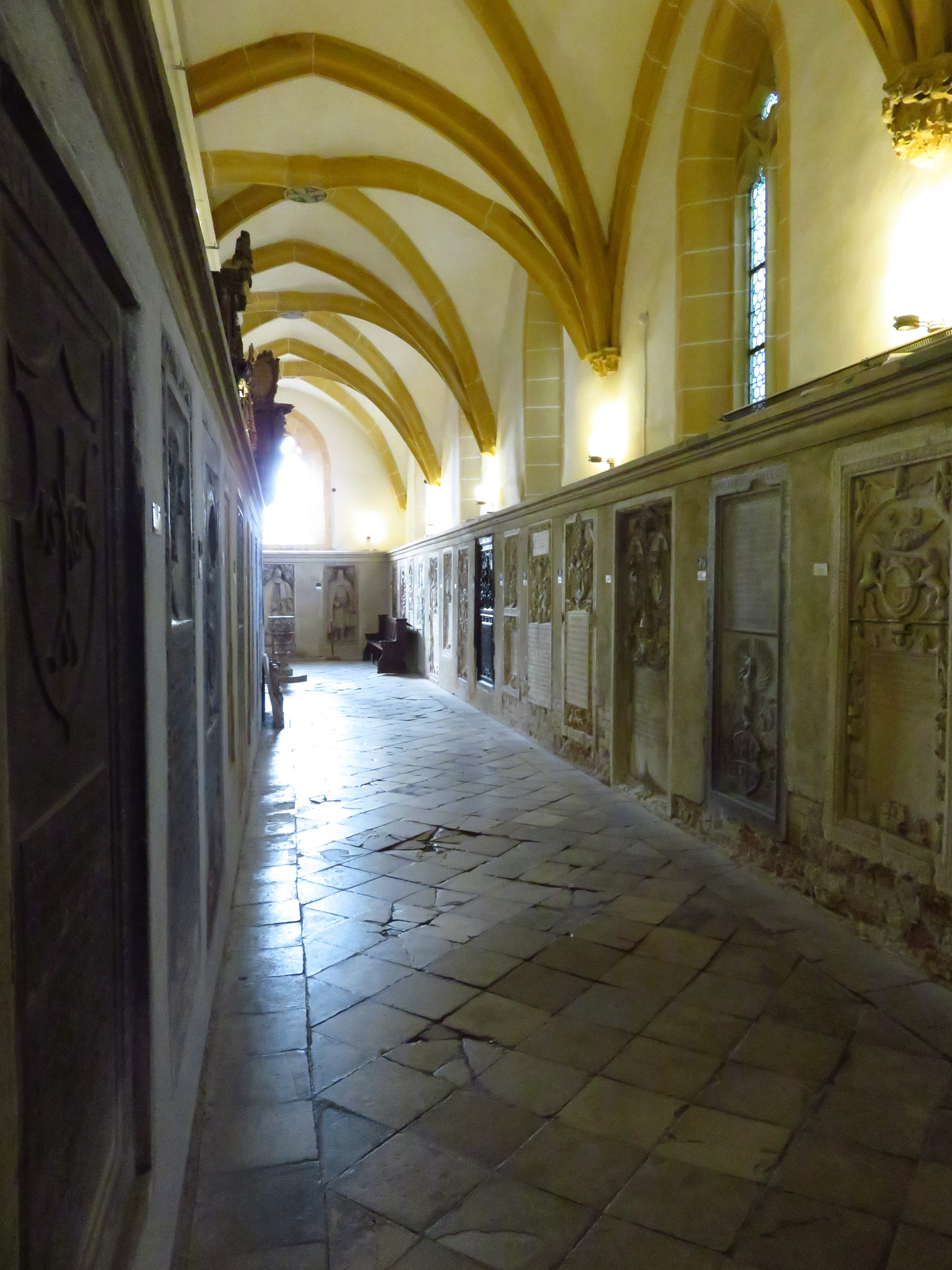 I continued my aimless wanderings and directed my steps towards the old centre again. I suddenly found myself in Piața Huet, at the foot of the rather impressive-looking Lutheran church. Organ music seeped out the doors, so I couldn’t help but seat myself on one of the benches in the square and soak up the sunlight and the music. There was a man walking to and fro exclaiming in a loud voice to his friends that he already paid enough taxes in Switzerland; therefore he would not pay the entrance fee to this church. I was more than willing at this point to enter the church though. As it turned out, an organ concert was scheduled for that night. I bought a 10 RON ticket with which I could enter the church, climb the tower and attend the concert (last of a series!) that night. The many vertical sculpted gravestones in the gallery made me wonder whether all these people had been buried upright, or whether these slabs had been taken from their graves and put on display – and whether that meant their graves were more or less naked now. I still don’t know the answer. I should have asked. I remain intrigued, so will have to return and find out.