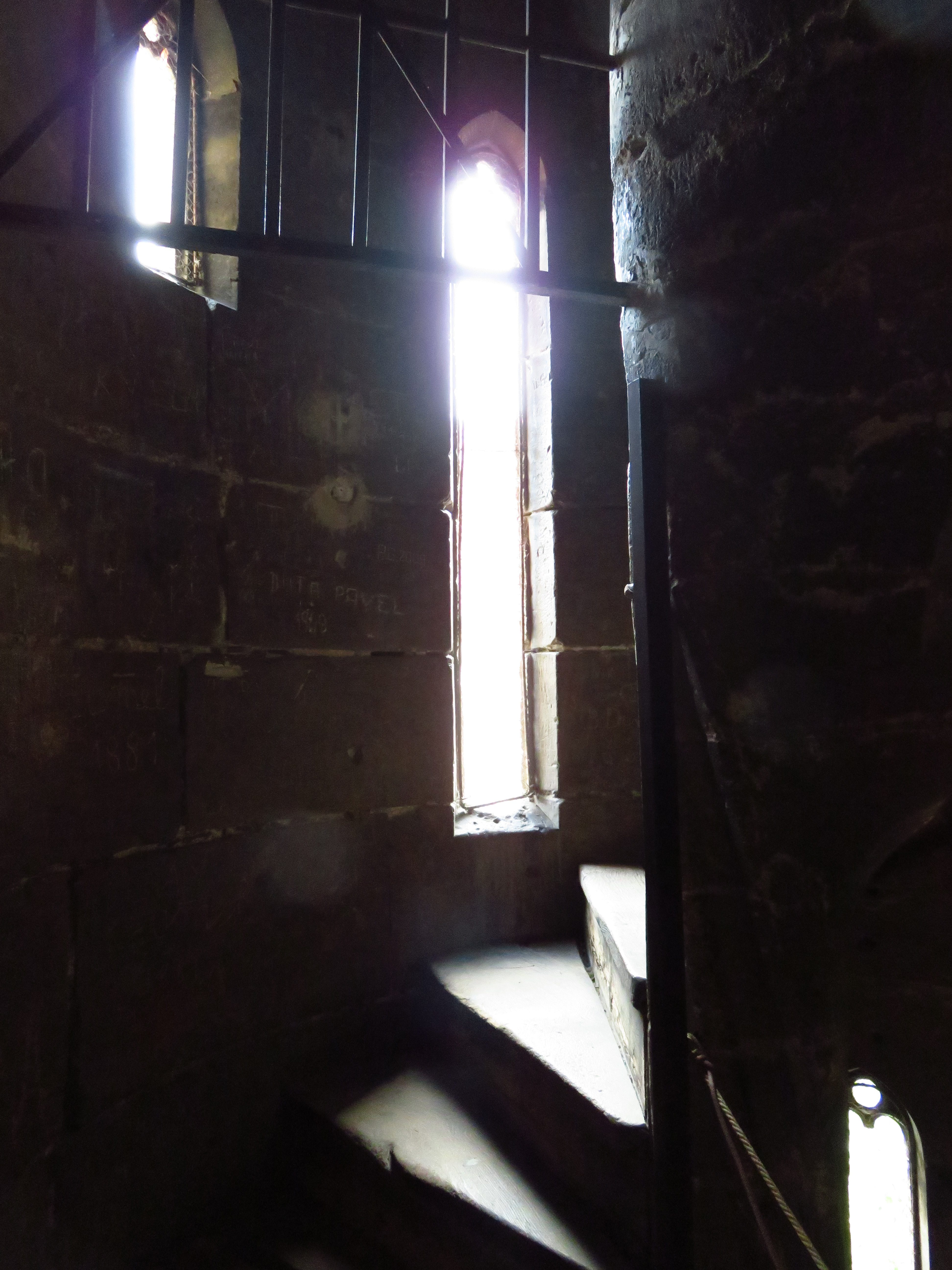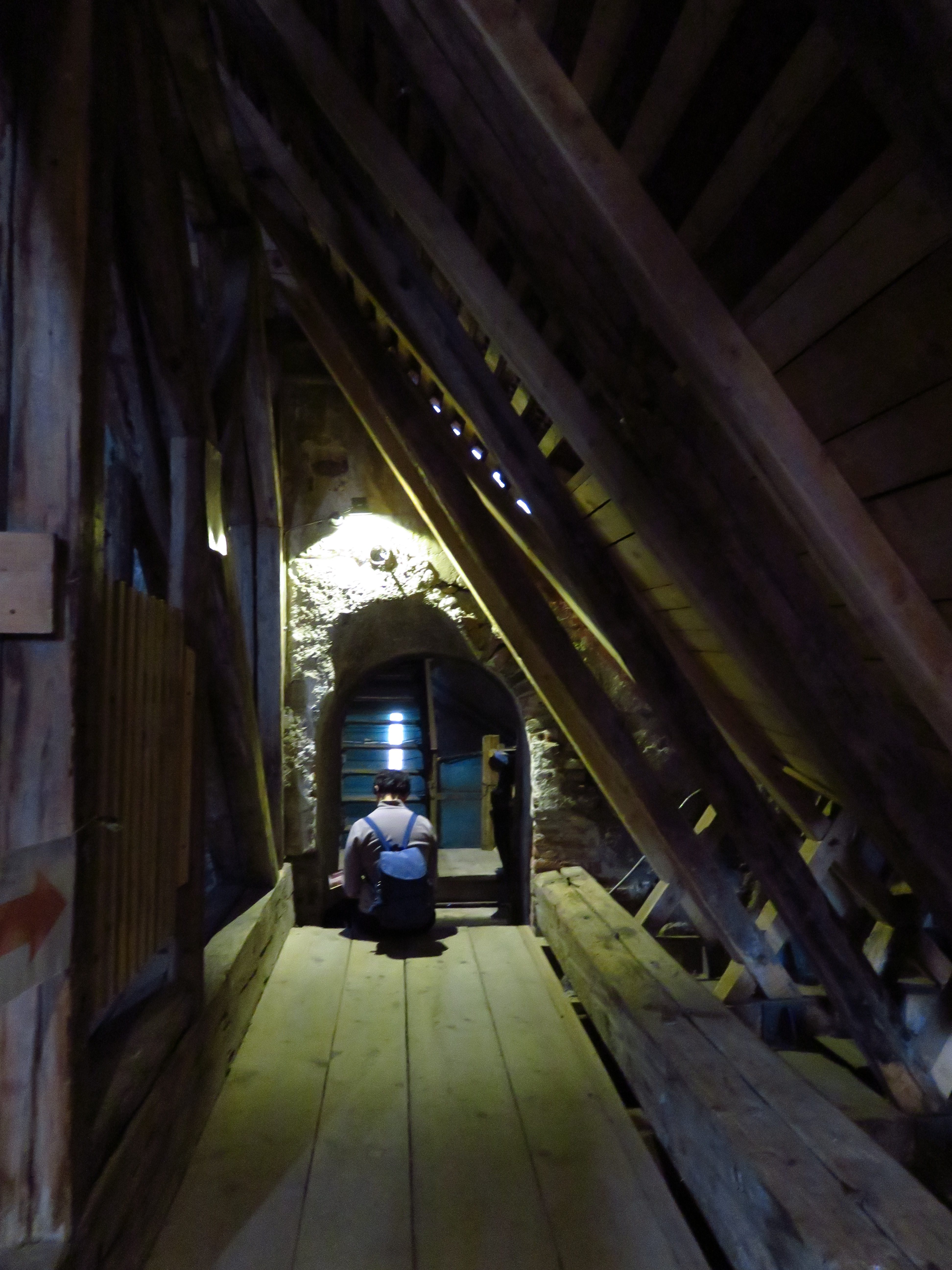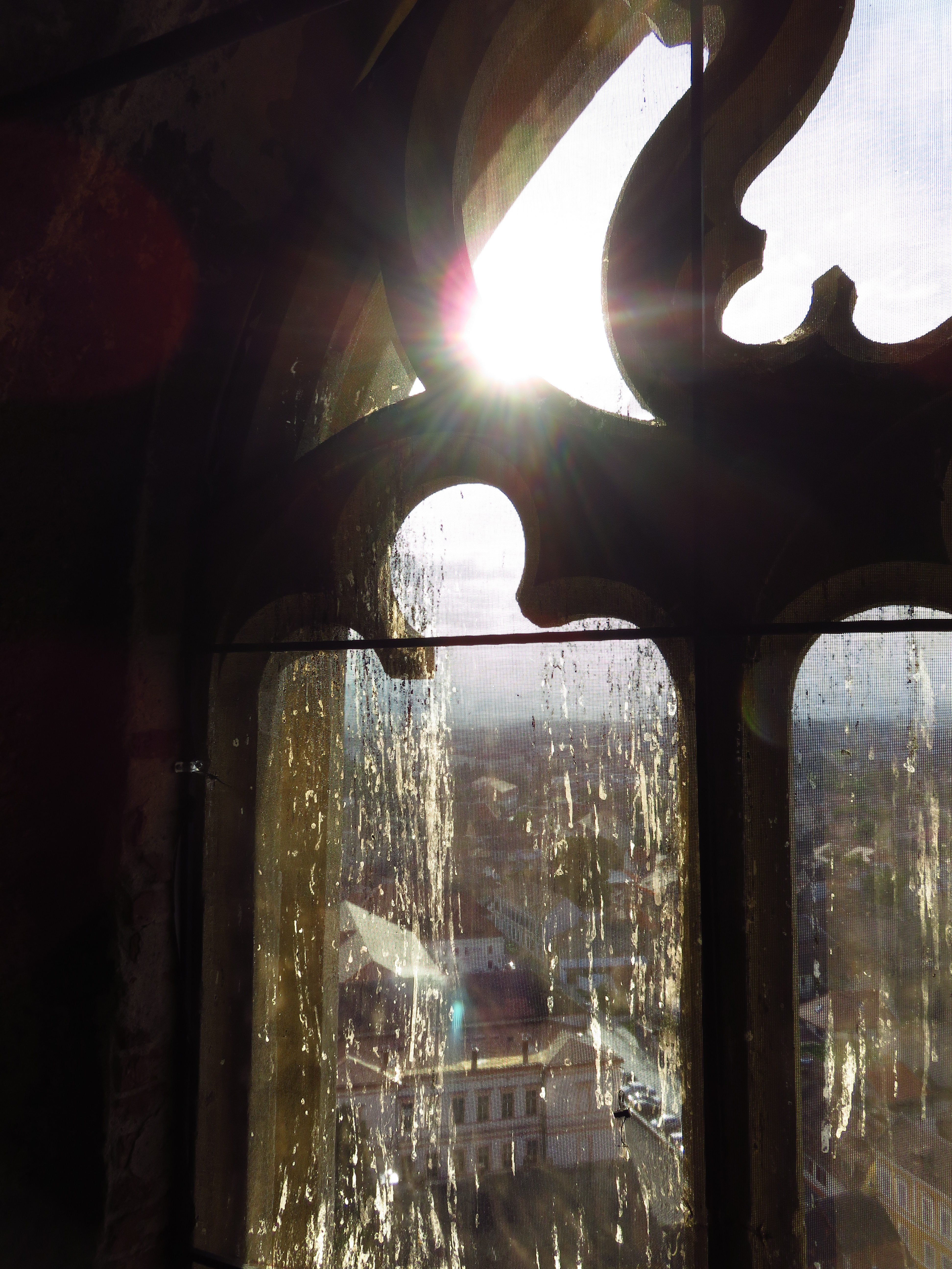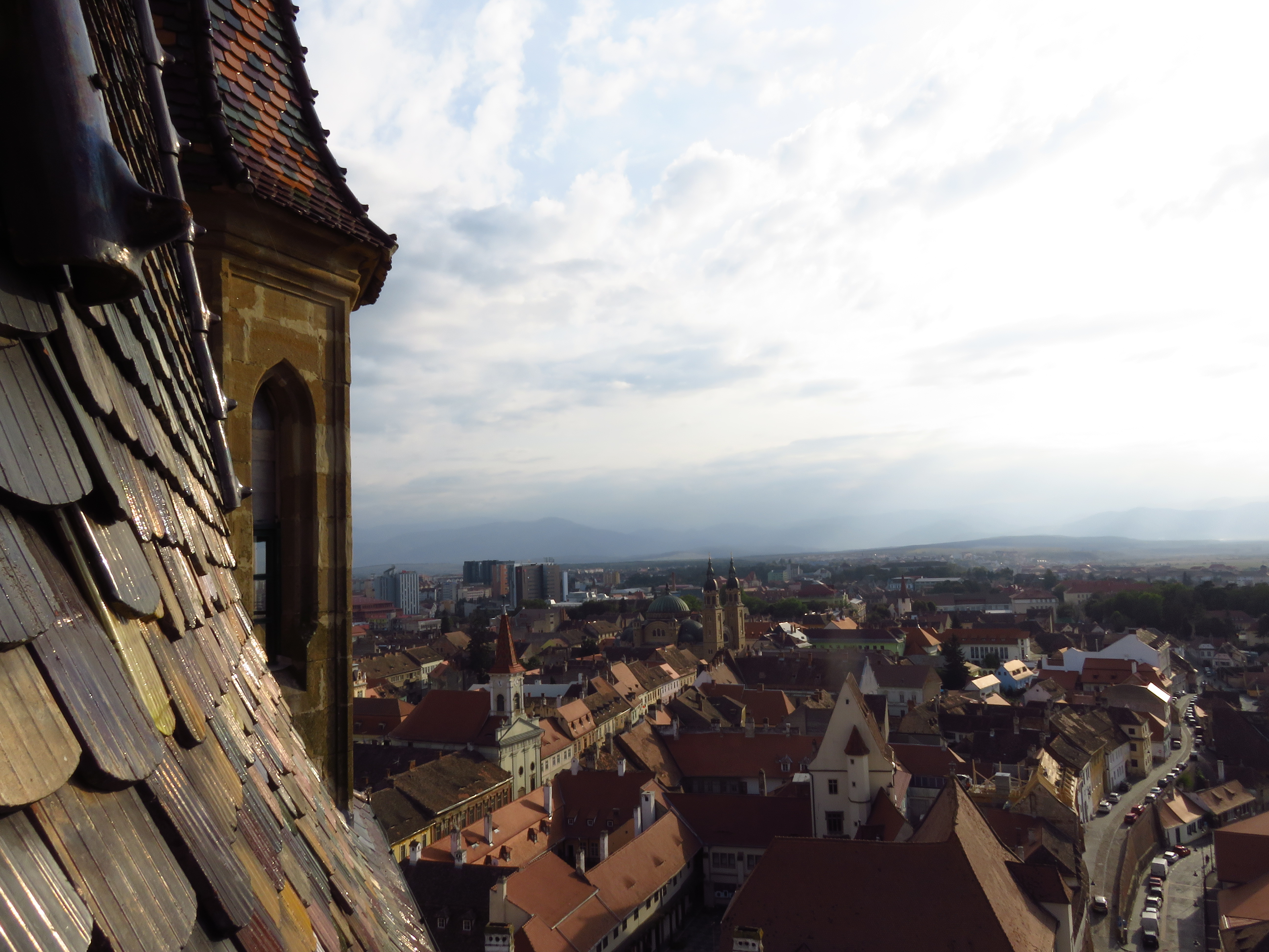 Up the tower I went. On the top floor I could walk around and open tiny windows to take pictures through. The view was stunning. Piața Mare and Piața Mica below, the Făgăraș Mountains shimmering in the distance. What a glorious place. I happened to descend down the stairs at precisely 5 pm, past the giant bells. I was unaware of the time though, so when the bells got hit by their mighty clappers that gave me a bit of a fright.