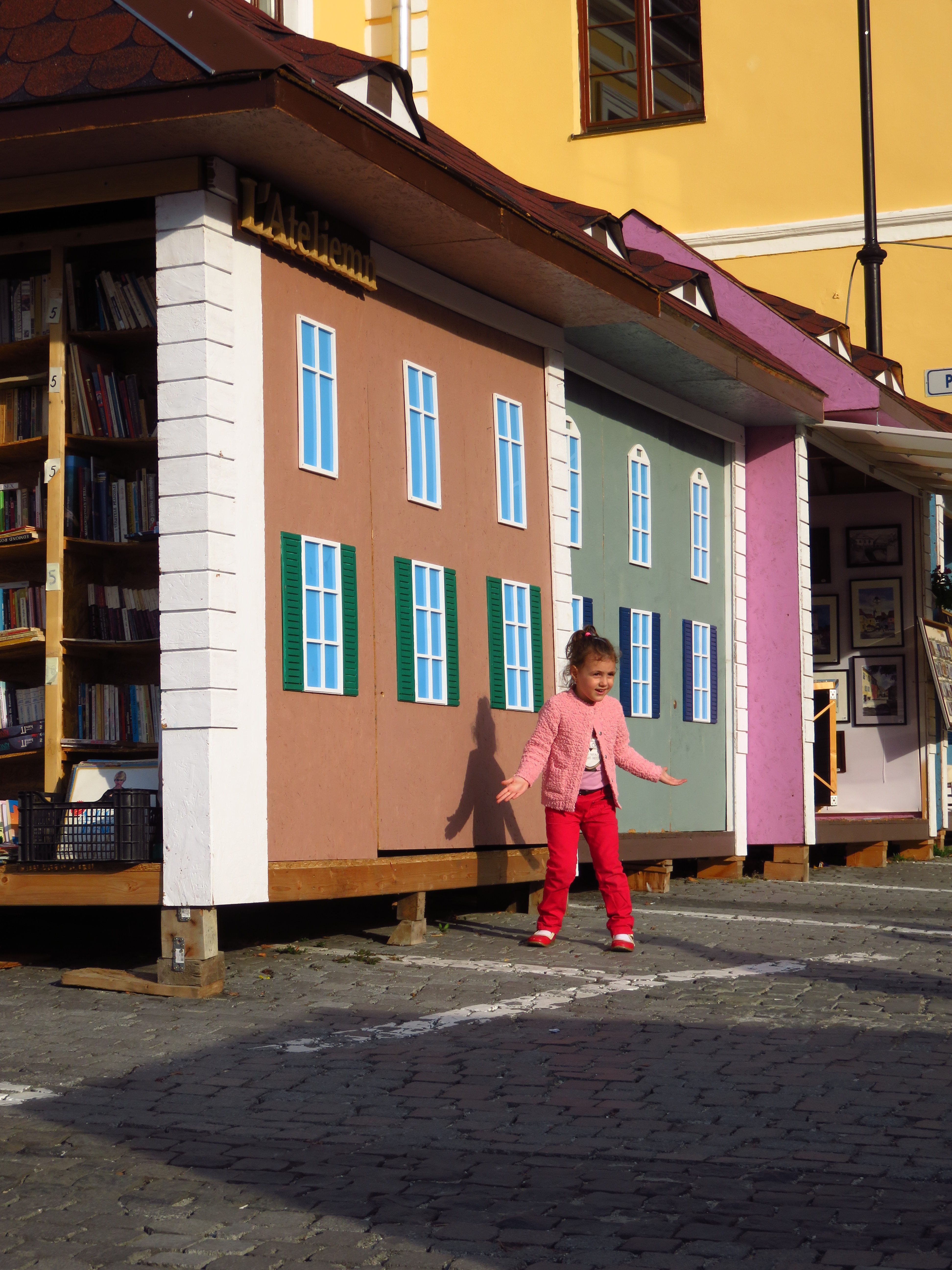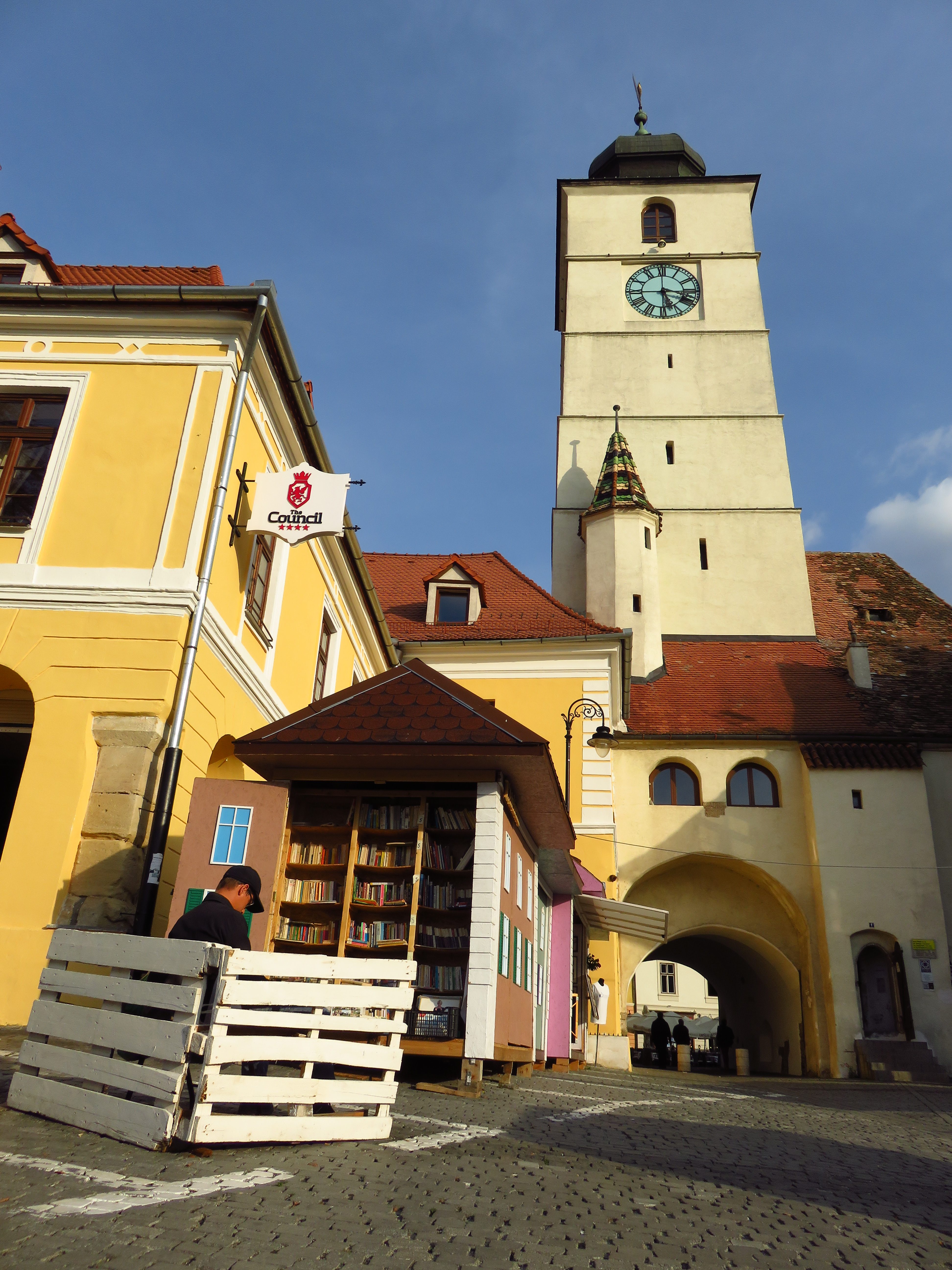 This post is getting lengthy… Word count says 1173. Not good. Your attention span is long gone. Still, I write for my own pleasure as much as yours, so I will continue despite what all the laws of blogging say. The next thing I took a note of in my well-worn notebook is the people who passed me by. There was a rare muslim girl clad in black from top to toe. Minutes later, a nun in very similar attire. Which made me wonder how I could make the distinction in the first place. There was a mother tying her daughter’s hair into a ponytail. The girl was clearly relishing the experience. A mother with a toddler and a dog in a pushcart. A man reading books from what was presumably his own bookshop under the Turnul Sfatului, the Council Tower; at the same time a little girl casting her shadow on the tiny houses this shop and some others resided in, asking her parents ‘What are these houses for?’ in the brightest of voices. I think it was around this time I needed the bathroom – and lo and behold! Sibiu has public toilets that are both free and clean. They are located below Piața Mica, on the road that passes underneath the Liars’ Bridge.