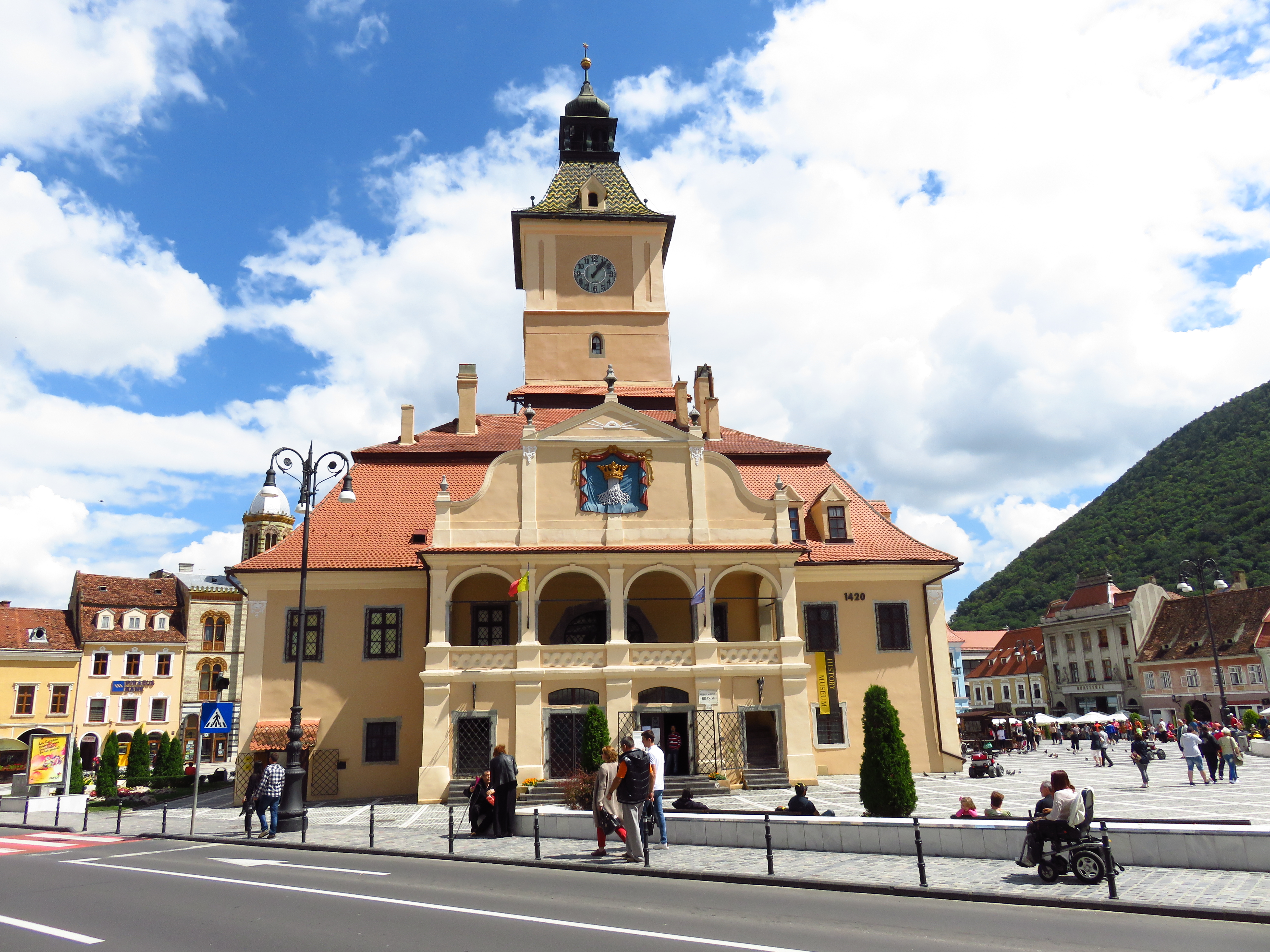 The Piaţa Sfatului is dominated by the beautiful old city hall; the Biserica Neagra towers over it. Do check this last one out from the inside, too – you can buy a ticket or treat yourself to an organ concerto on Tues, Thurs or Saturday at 6 pm. Or attend the German-spoken church service on Sunday morning, 10 am if you can muster the courage to get up early.