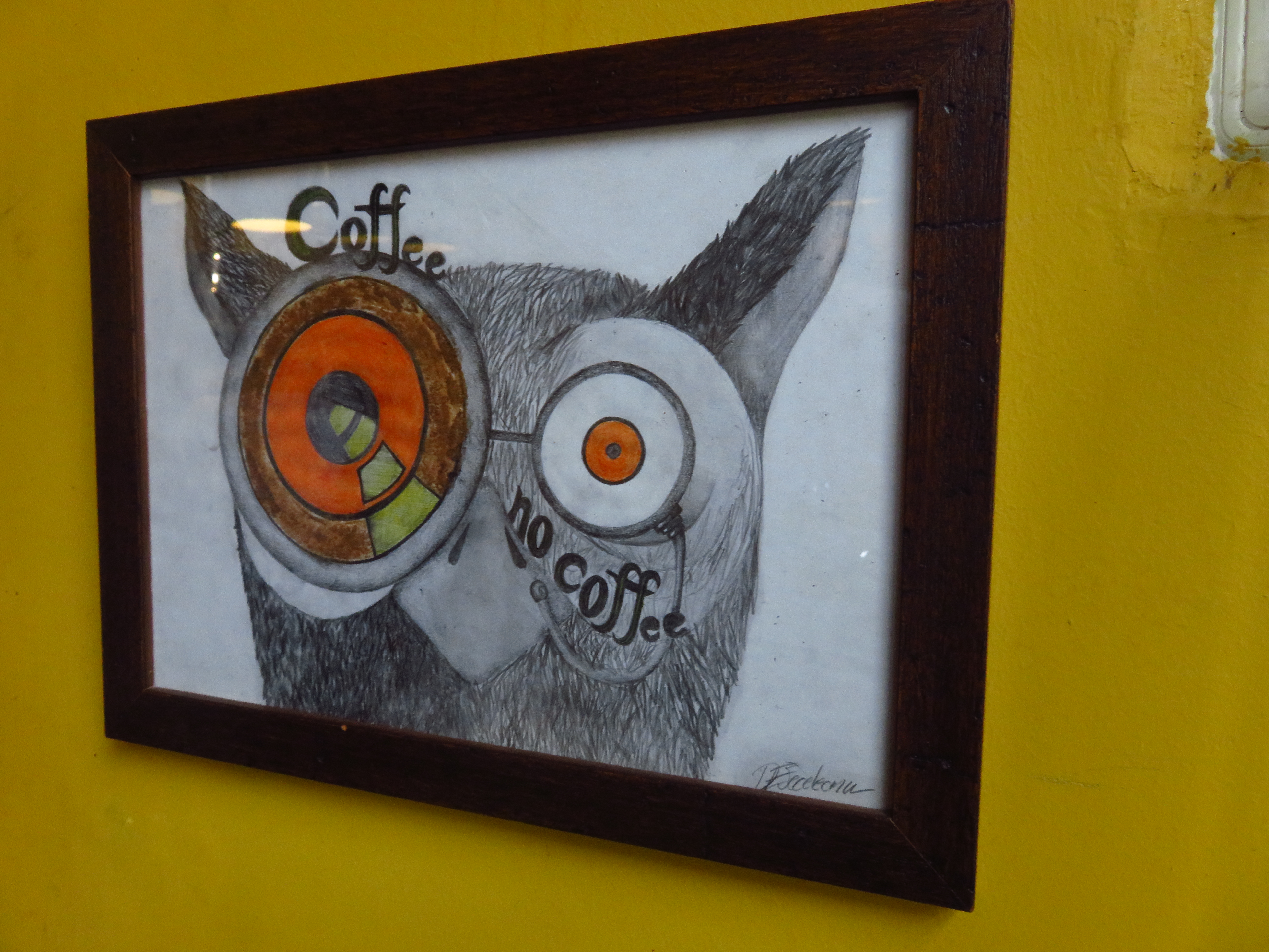 I am sitting in a newly discovered one as I write – Shake Coffee. It was pouring it down so I ran into a street I thought I knew – but to my surprise, I had never walked there before. And behold! Through the veil of the rain Shake Coffee appears, a waiter beckoning me in: ‘Come inside – it’s better here.’ I could not but concur, and didn’t mind a coffee. It definitely is better inside. A lot: 1) Sunflower-yellow wall. 2) Smell of coffee. 3) Walls lined with books. 4) Cosy furniture. 5) Free wifi. 6) They do decaf coffee. 7) You get a little folded quote with your coffee. 8) Tea comes in a French press. So thank you rain for bringing me here!