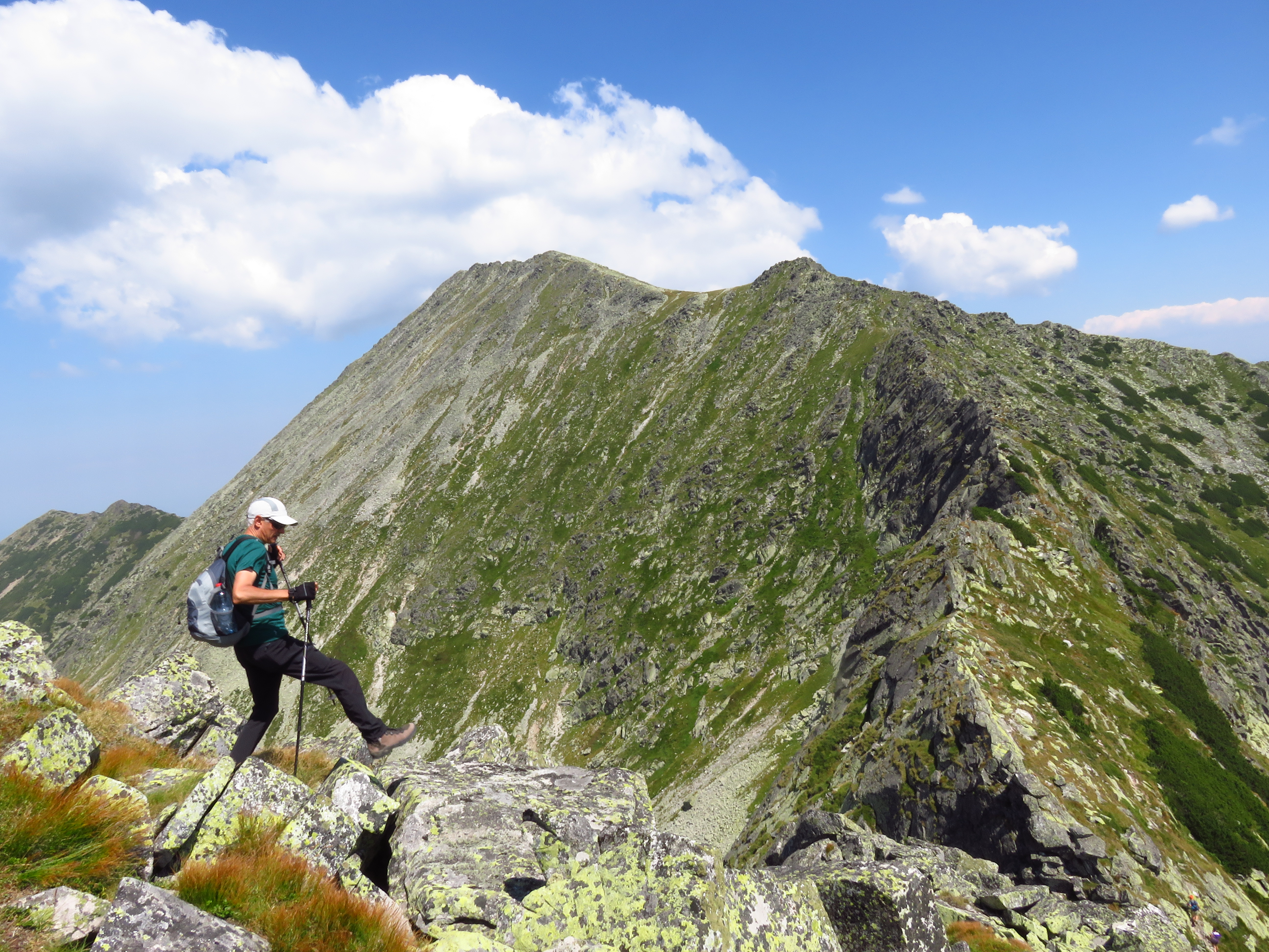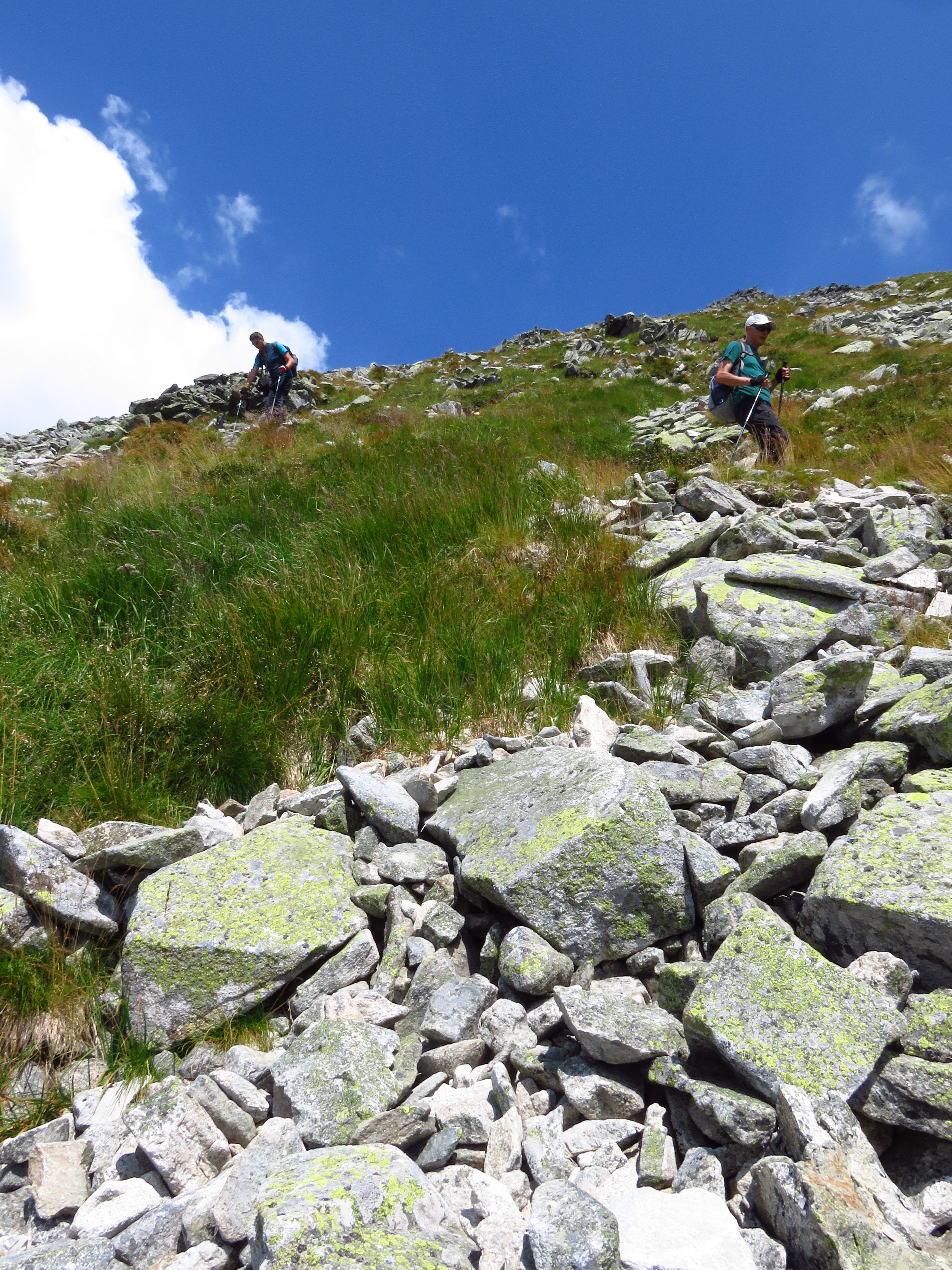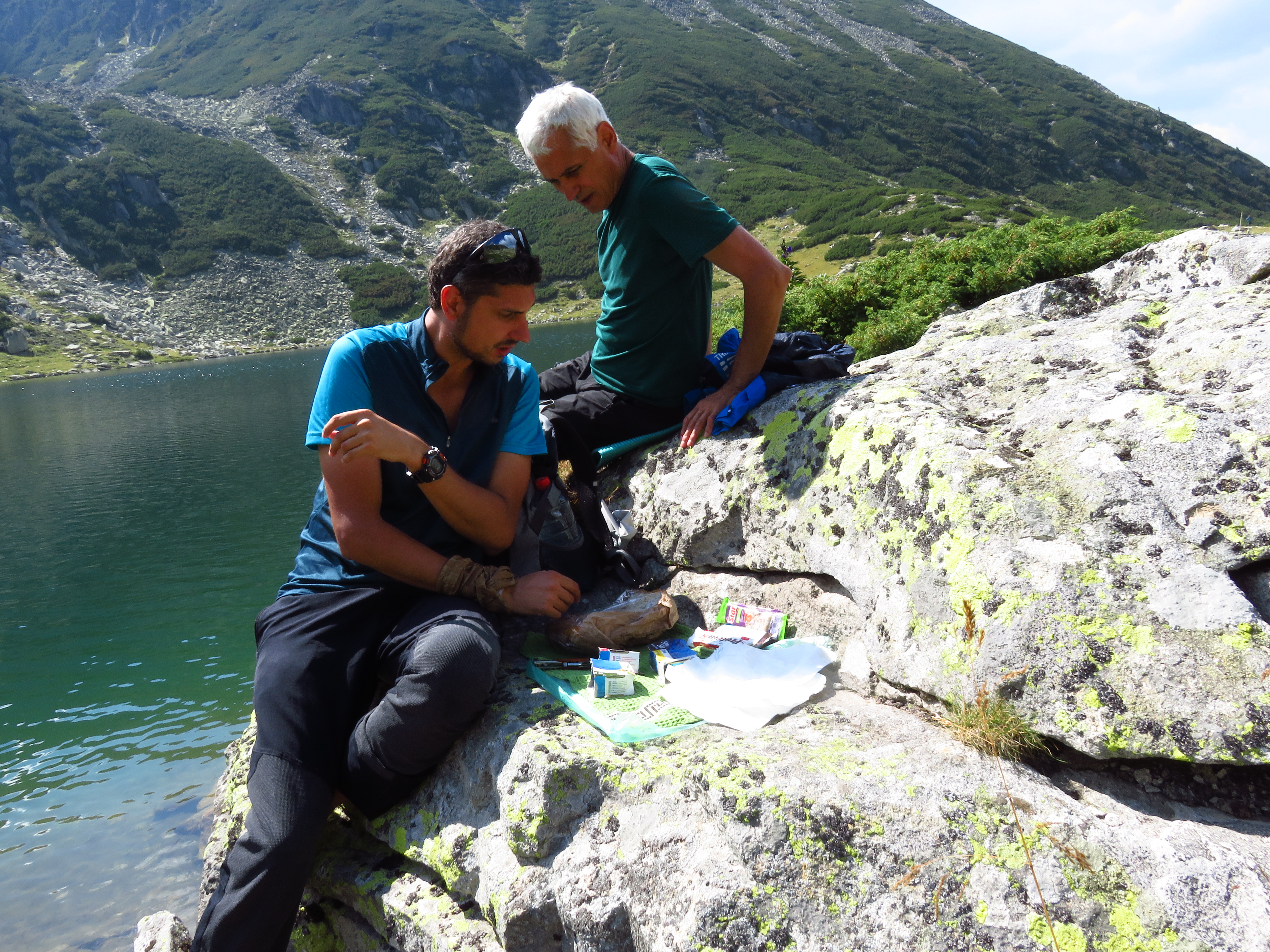 I wouldn’t have ‘discovered’ this round if I hadn’t met Catalin and his dad, Marin. I met them on Peleaga Saddle; they left the peak at the same time and I remember thinking as I walked behind them that I wouldn’t mind to stick with them for a while. I asked Catalin to take a picture of me in a scenic spot (well, there are only scenic spots!) which he kindly obliged to; then asked where they were heading. When they heard about my plans (a round over Papuşa and Custura Peaks and then back to Bucura Lake via Poiana Pelegii), they tried to convince me to join them on what they said would be a much more rewarding hike. And they succeeded. I am so glad I joined them. Not only did this hike end up in my top five (not that I have one written down anywhere); they also made great company. They kept a pace but also took plenty of time to take in the view – and to take pictures. Catalin has a more than decent camera and some skill – for which I thank him. They also shared their lunch with me (Lidl bread! Tuna! Onions! Tomatoes!) and were good conversation partners – although I mostly talked with Catalin – Marin didn’t speak English and I resorted to English most of the time because frankly, hiking and making an effort to be understood in Romanian is a bit much. But, as Marin said when I apologized for this – cred că ne intelegăm: I believe we understand each other. I think we did indeed.