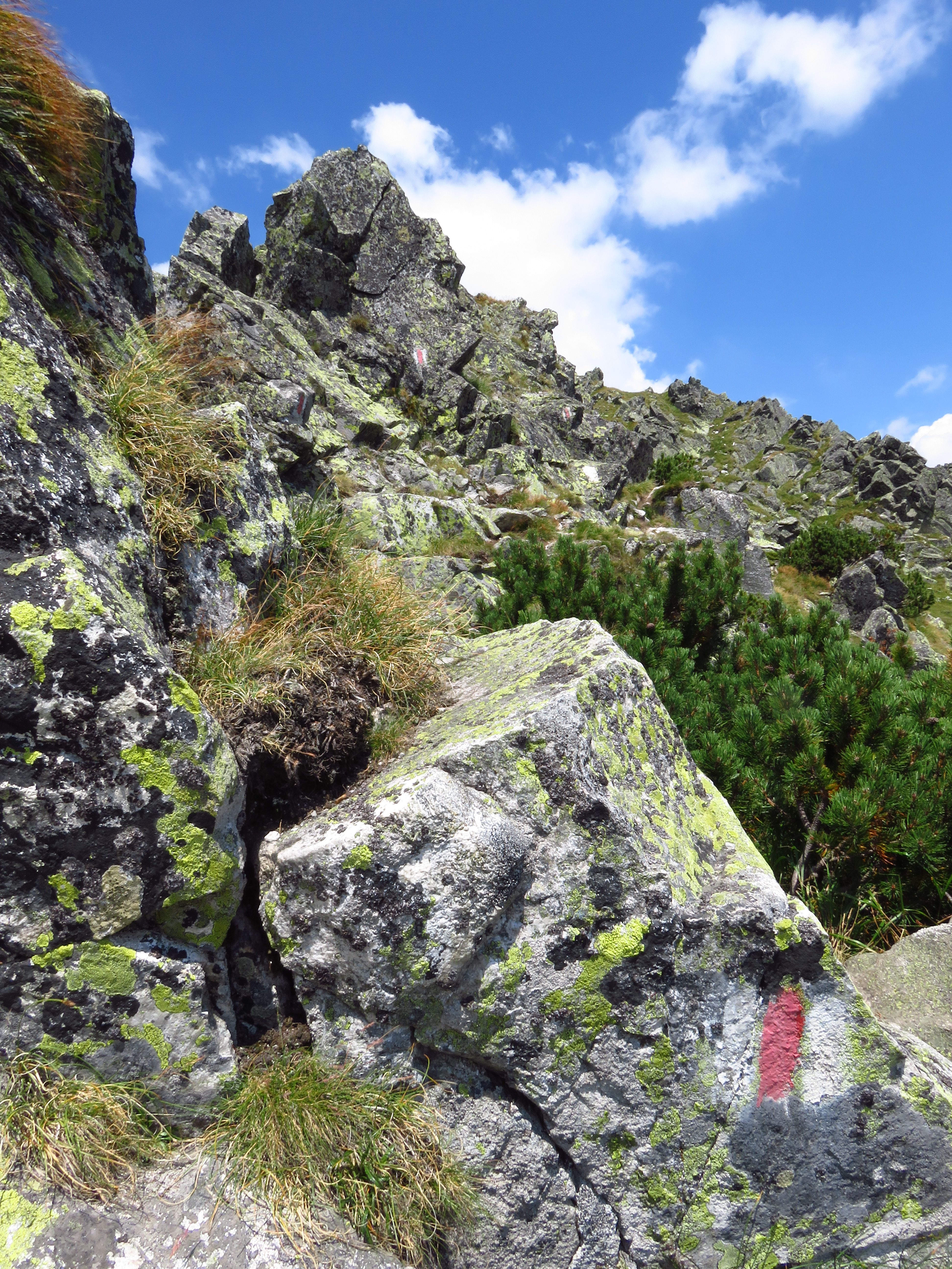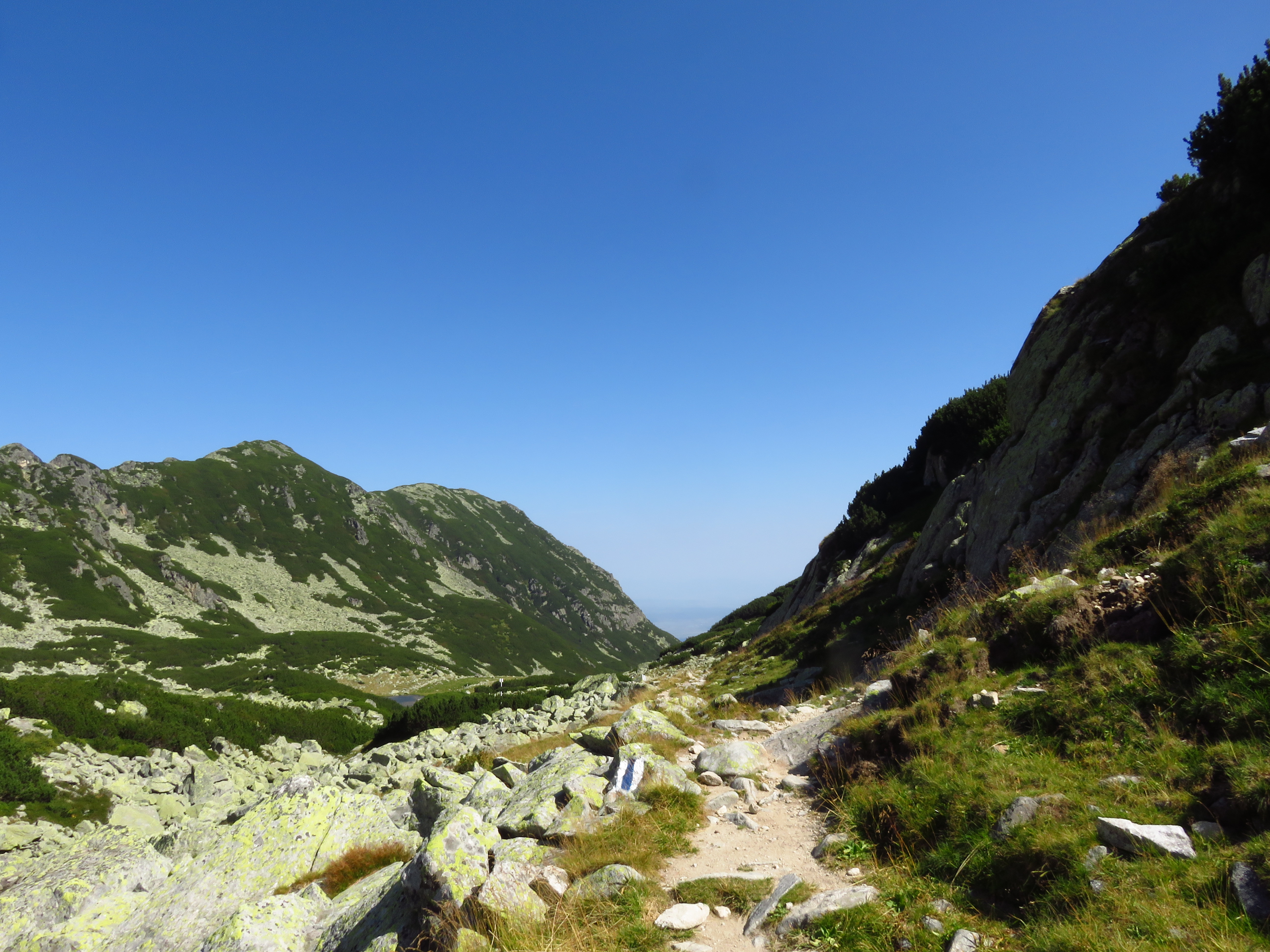 To start with, walk up to Peleaga Peak; see the description above. Walk up to Pelegii Saddle and turn right to continue on the yellow cross trail to Papuşa Peak (2508m). From Papuşa Peak, descend northeast on the red stripe trail. You will pass Tăul Adânc, also known as Tăul Răsucit, ‘the twisted lake’ – because it really looks like a wrung-out tea towel (well, a very wet one at that). The fun thing is the trail itself also has more or less this shape; see the map at the bottom of this post.