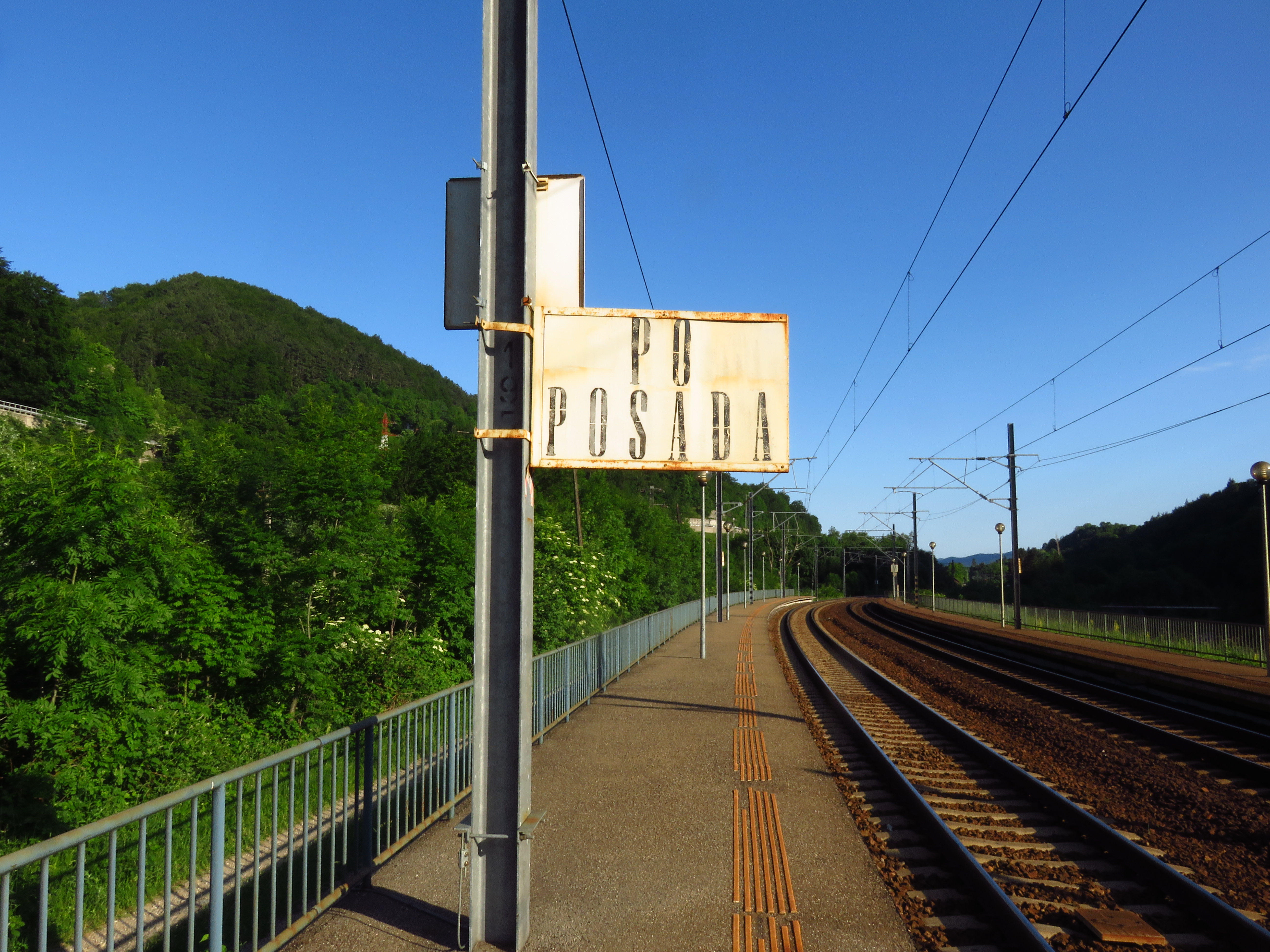 Because of this lofty goal I don’t allow myself any breaks – not even to check my location. And that, of course, is a mistake. When I do check, I find out that I am not 3km away from my goal as I assumed, but about 2.5km off the trail. Dismayed, I turn around and retrace my steps, uphill – the sun straight in my face. By the time I find the very inconspicuous and unmarked path that I should have followed, my feet are swollen and sore. The trail is grassy now though, so I take my shoes off until I reach the edge of the forest, and a new hut. There is a fire, so there should be someone around. According to the owner, it should take me about three quarters of an hour to reach Posada, my destination. I notice waymarks so I cheerfully start descending – but the waymarks soon disappear again and my GPS tells my I am off the official trail. I start pacing back up to find the trail, but there is no other trail – I head back down the same way again and hear voices: the guests of the hut owner. I am on the right trail after all. However, soon the path forks; waymarks disappear and I am at a loss again. This happens about three times: waymarks disappear, the path forks, and I have to somehow figure out which way to take. It takes me much longer than 45 minutes to reach the railway halt at Posada. I arrive just eight minutes before the 18:39 train comes in – and when it does I tear up. My husband can follow my progress via a tracker app and texts me ‘Well done, you were fast!’. Fast, yes – but I didn’t plan to walk an extra six kilometres and injure my feet.