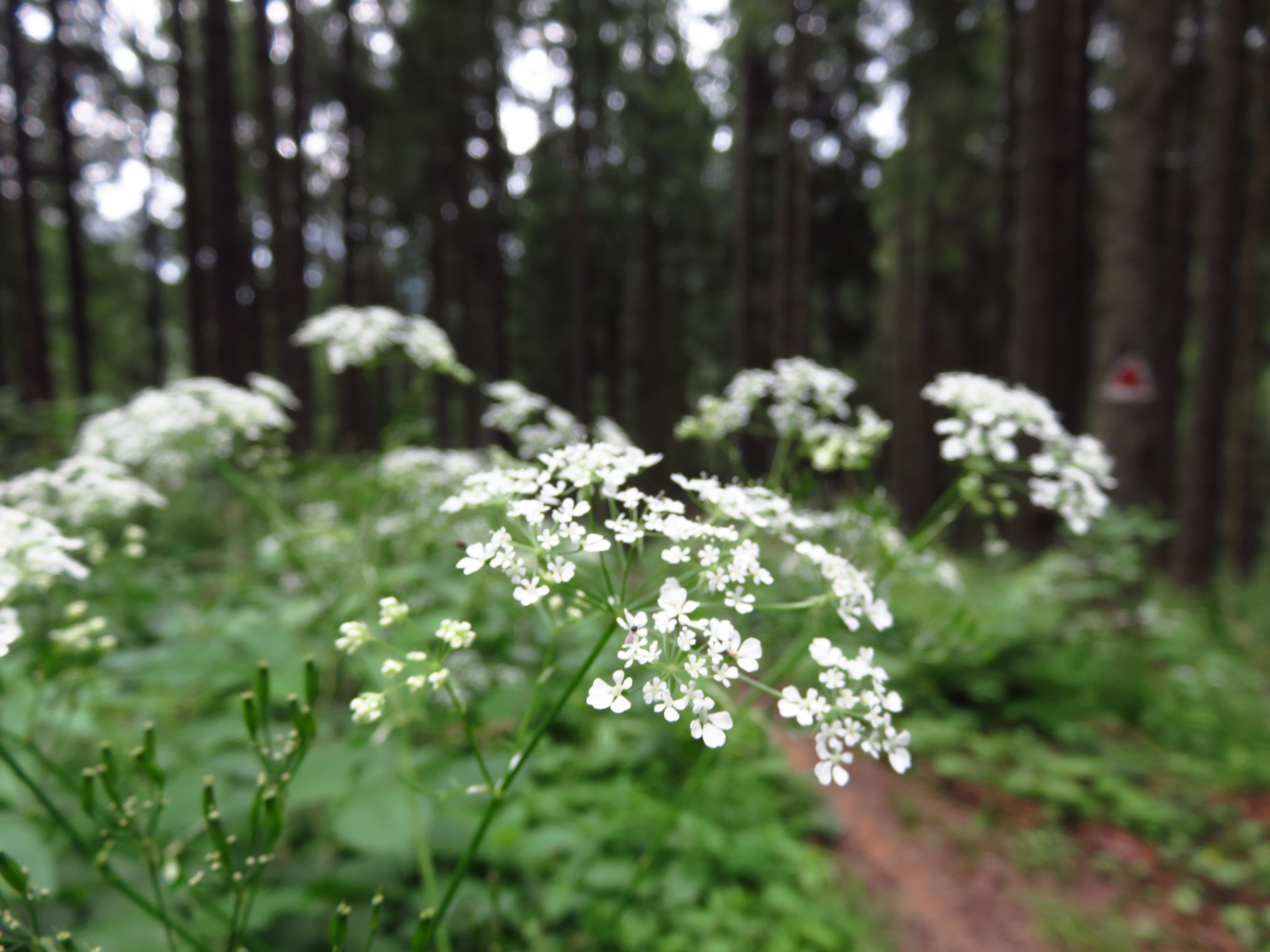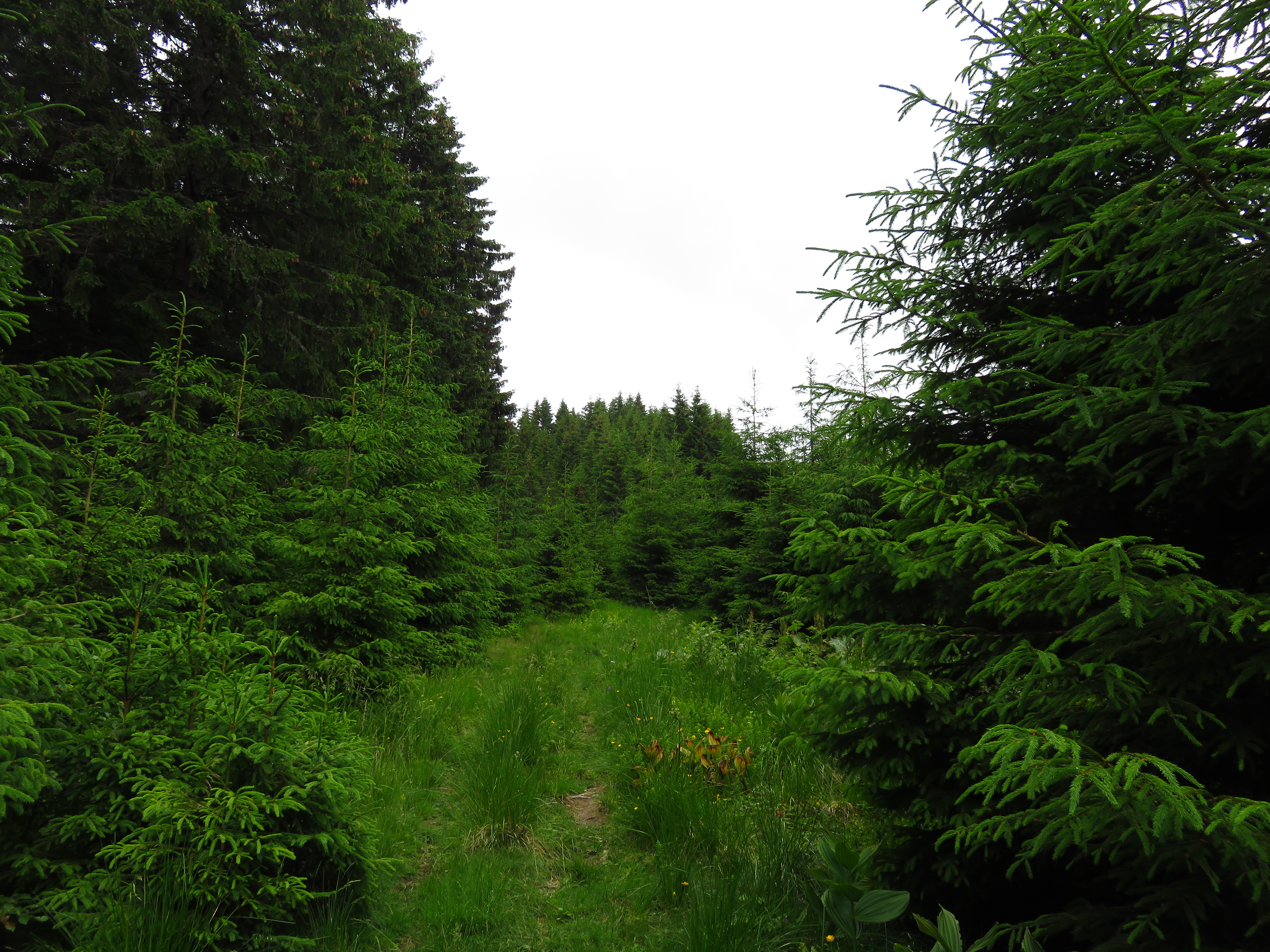 I headed up through the Cioplea district, past a plethora of expensive-looking pensions and hotels – Predeal is a popular skiing resort (with the advantage that room prices are lower in summer). After about half an hour I left the last houses behind me and started hiking up the muddy red stripe trail to Cabana Susai. Upon my arrival here after another hour or so I found a bunch of middle-aged people wearing traditional Romanian embroidered blouses dancing in celebration of Sânziene, an ancient festival that celebrates fairies and fertility – also known as Ziua Iei, the day of the Romanian blouse. I was soon dragged into the circle and although I am rubbish at dancing I loved this merry musical interlude. (Video here.) Refreshed, I continued into the forest down an even muddier red triangle trail – I soon made a bit of a slide. I descended to the Azuga stream, then continued southeast through a relatively open area. When I stood still to take a picture of the main Baiului ridge I heard a swishing sound – and before I knew it four deer rushed past me at short distance.