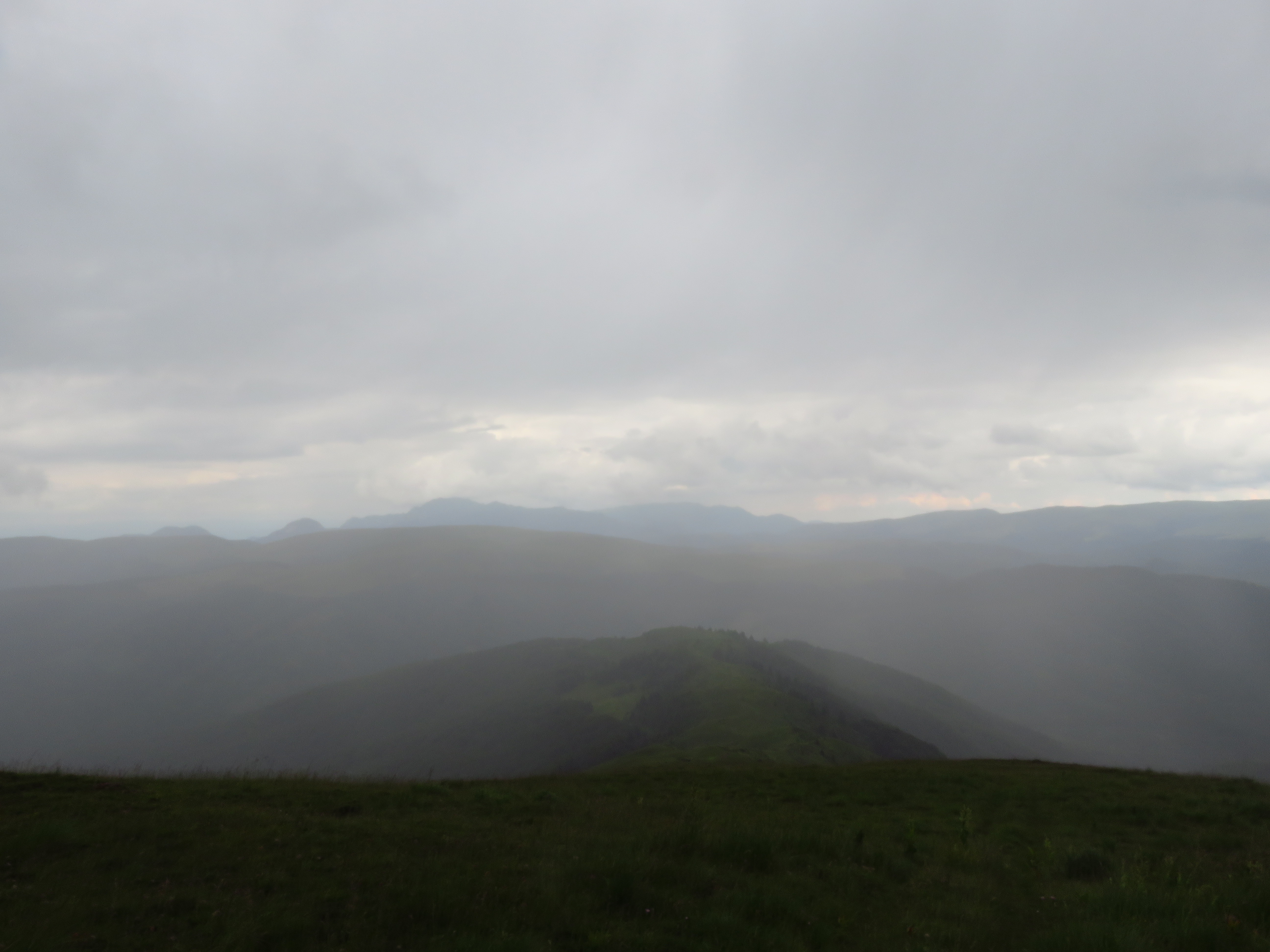 The rain soon overtook me and drenched my shoes and socks in no time. I cursed the skies and myself for not having stayed under Paltinu Peak, but now I had no choice but to go on. When I arrived at Predeluș Pass I felt disillusioned: there were buzzing electricity masts right over the flat grassy area which otherwise would have made a fine camping spot. I definitely did not want to spend the night underneath these. Ultimately I ended up a few hundred metres away from them on the next section of the red stripe trail – I could still hear the buzz but it was tolerable. By the time I got here the rain had stopped so I could pitch my tent without it getting flooded – that was something. But I felt tired and overwhelmed and angry with myself and disappointed and scared again – I’d pitched my tent at 1200m on the edge of the forest, clearly in bear territory. But it was 6:30pm by this time and there was only forest ahead of me, so I had run out of options. I made it through the night alright, and even managed to dry my socks – I’d read somewhere that they dry much better if you put them in your sleeping bag (rather than hang them from your laundry line). I was sceptical, but decided to give it a try (after wringing them out first). And it worked a dream – they were almost dry the next morning!