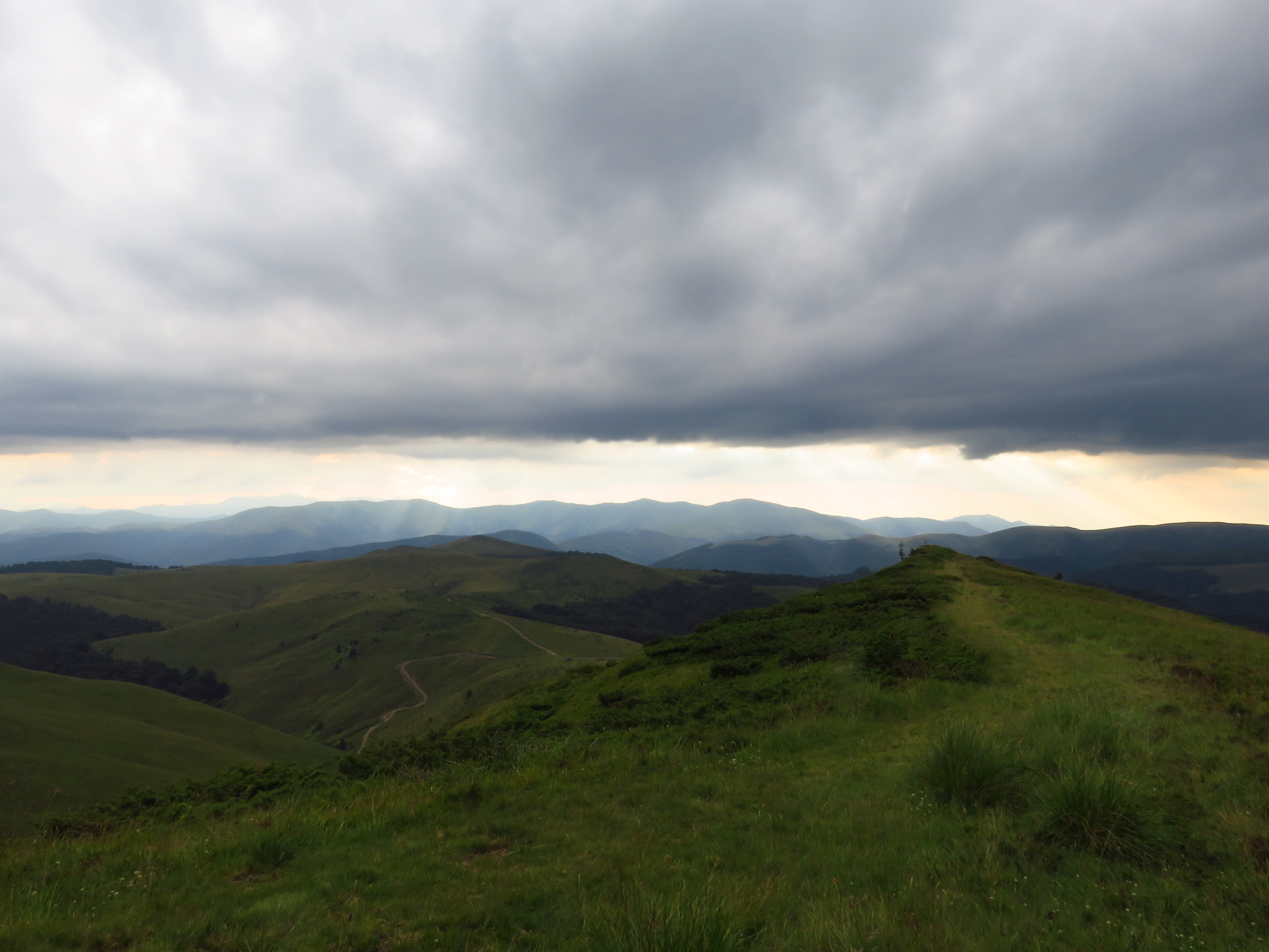 Also, I was scared of the dogs – the flock and its guard dogs were nearby and I wasn’t sure if I was prepared to face them – and from this distance couldn’t judge whether they were well-behaved or not. So I decided to continue for a little bit, walk past the two stânas I could see and find a spot that felt safer. When I met the shepherd he turned out to be very friendly and his dogs were well-behaved. He also told me that Predeluș Pass, which I was heading towards, was only one hour away. That made me decide to press on, even though there were ominous clouds behind me and I felt really tired. Decision making can be so hard, especially if you’re tired and hungry and scared. I blamed myself a lot for this decision afterwards but in hindsight, I don’t think I could have done much better.