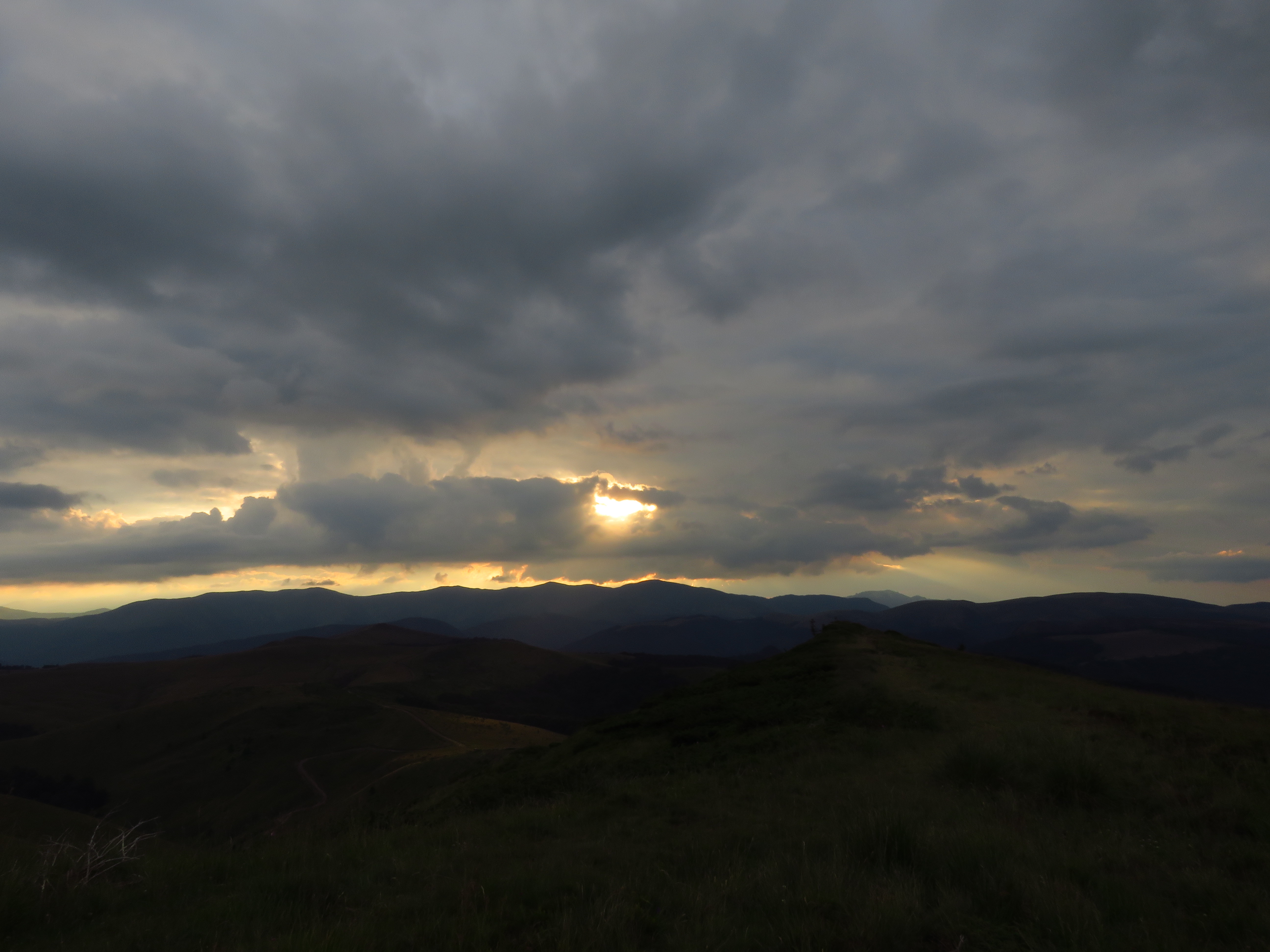 I continued over Turcu Peak and then passed underneath Paltinu Peak, where I met three trail runners – the only other tourists I met on the trail during these three days. I was beginning to feel tired and hoping to set up camp just after Paltinu Saddle, and just before 5pm I found a pretty good spot with lovely views and sheltered from the prevailing wind – but then I spotted a shepherd and felt fear rising in me. I have had plenty of encounters with shepherds and almost only positive experiences, but last year I got a very severe warning from someone I respected and trusted about rapist shepherds in the Țarcu-Godeanu mountains. Now I think this warning applied specifically to that area, but ever since I have felt less comfortable around shepherds. I think my fears are unjustified since I have always been treated respectfully by shepherds, but still, the warning got to me. Perhaps my recent completion of Tess of d’Urbervilles also subconsciously fuelled my fears. Now I’ve never encountered anyone as evil as Alec d’Urberville, but reading about Tess’ mishaps may just have stirred my imagination a bit: there are Evil Men Out There and what if I get assaulted by one? Fortunately, that never happened.