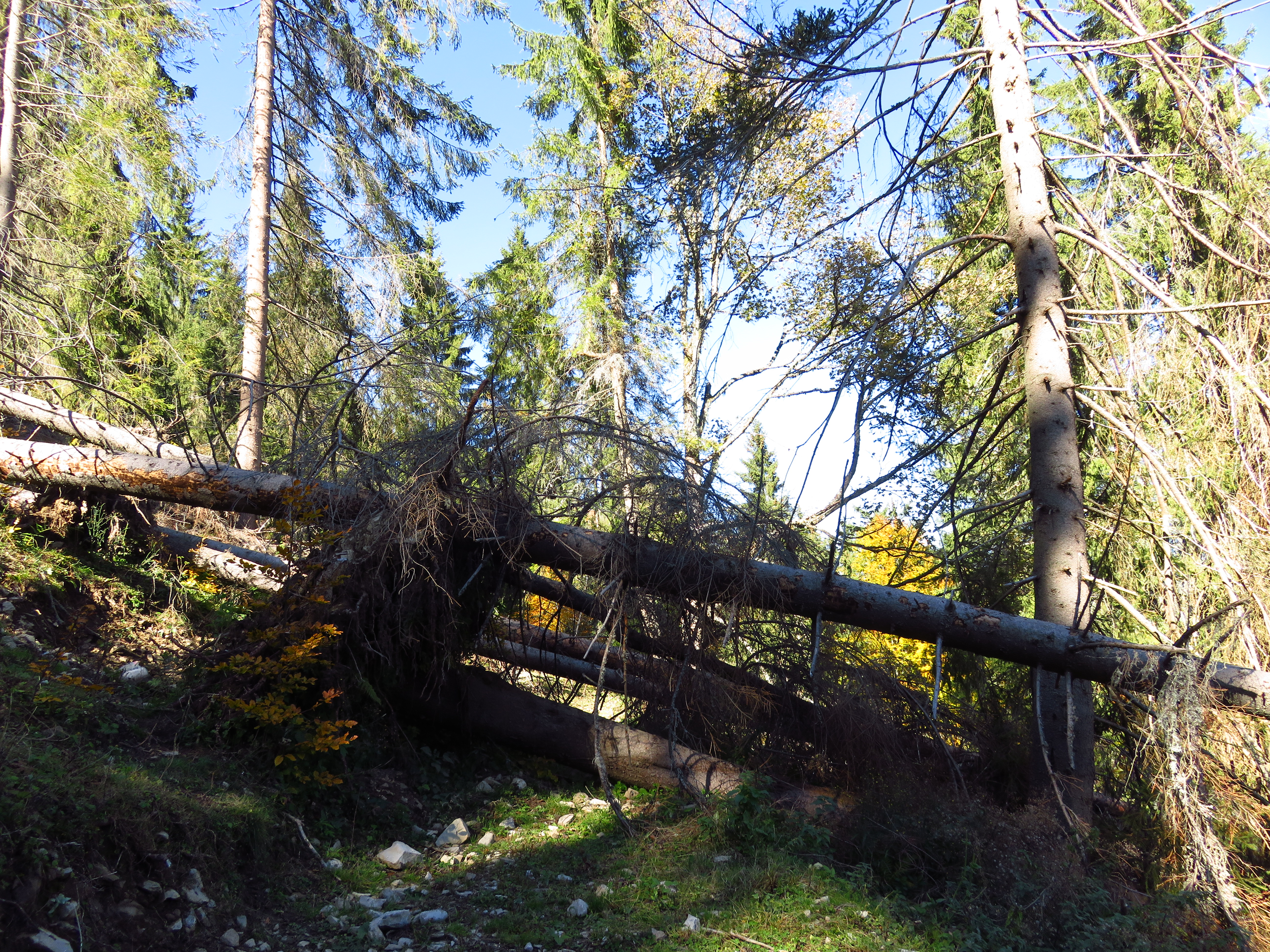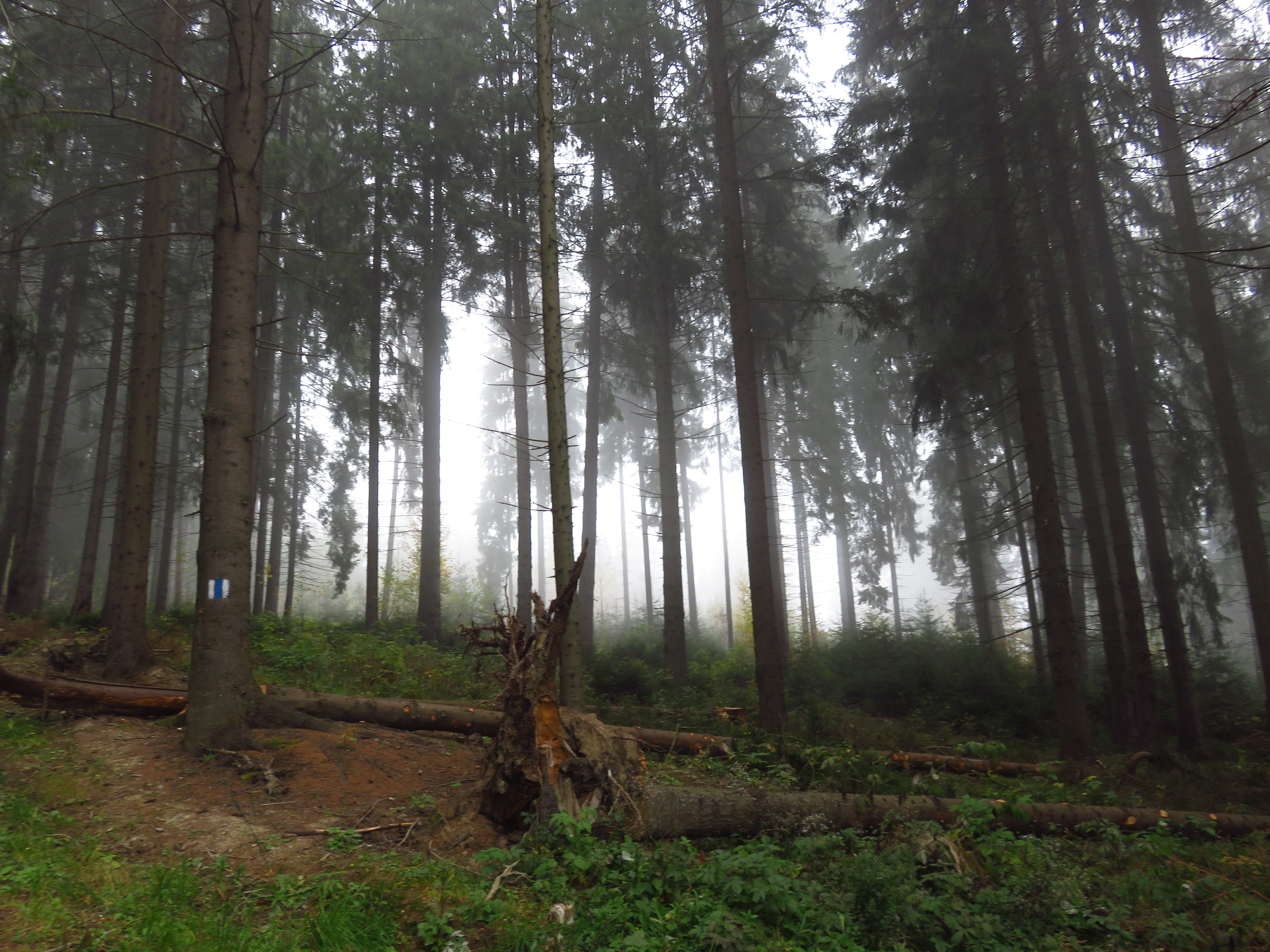 I walked out of town up a long concrete staircase, past the Agenția Zonei Montane and then entered the forest. A lot of trees had been chopped down in a rather sloppy fashion, so I suspected this was a case of illegal deforestation and took pictures, meaning to report it later on. When I mentioned it at the AZM later on the director reassured me: there had been a violent storm earlier in the year and the trees had to be taken down. Besides he thought few people would be so brazen as to cut in the immediate vicinity of a town. I think he had a point there.