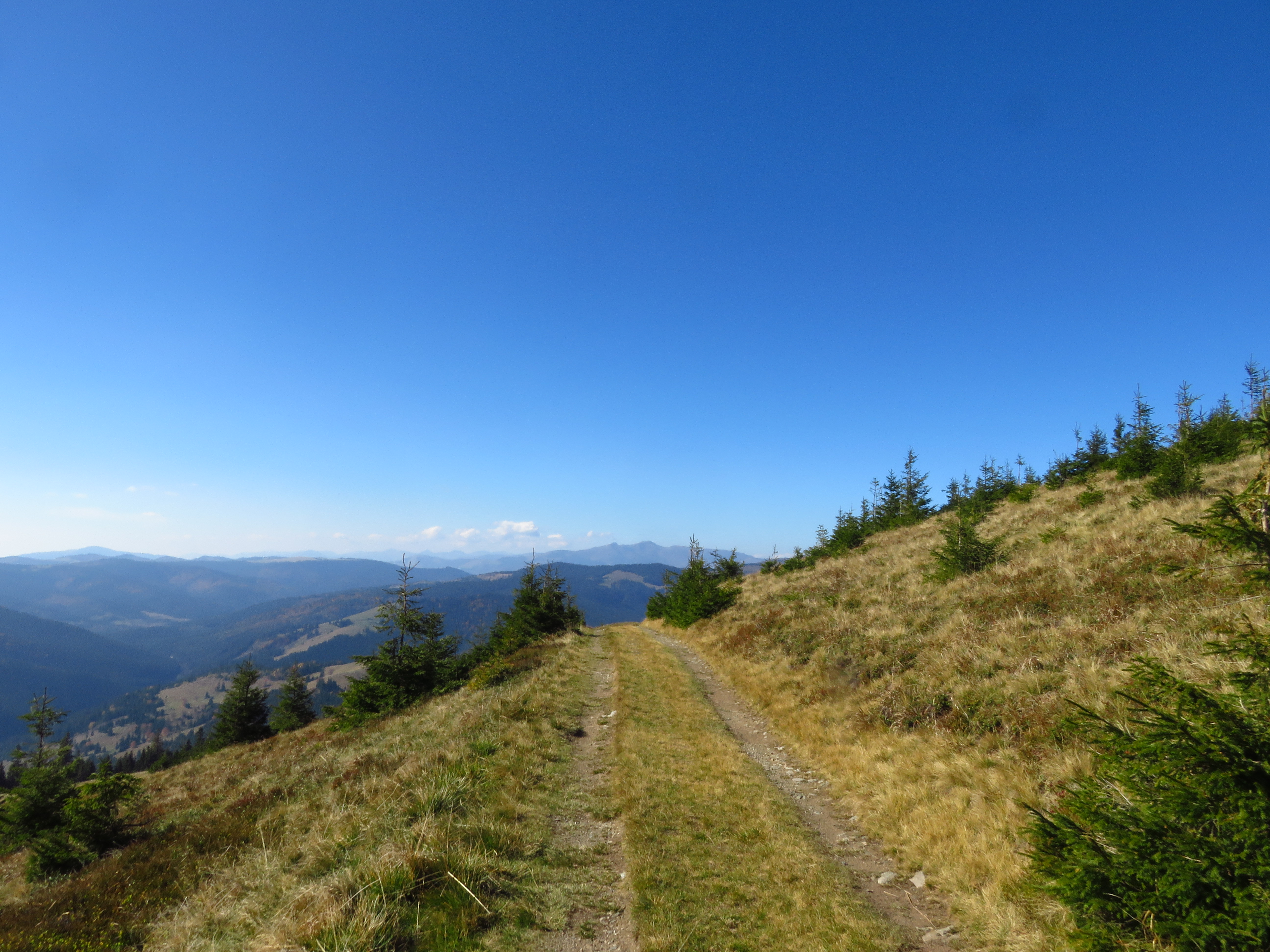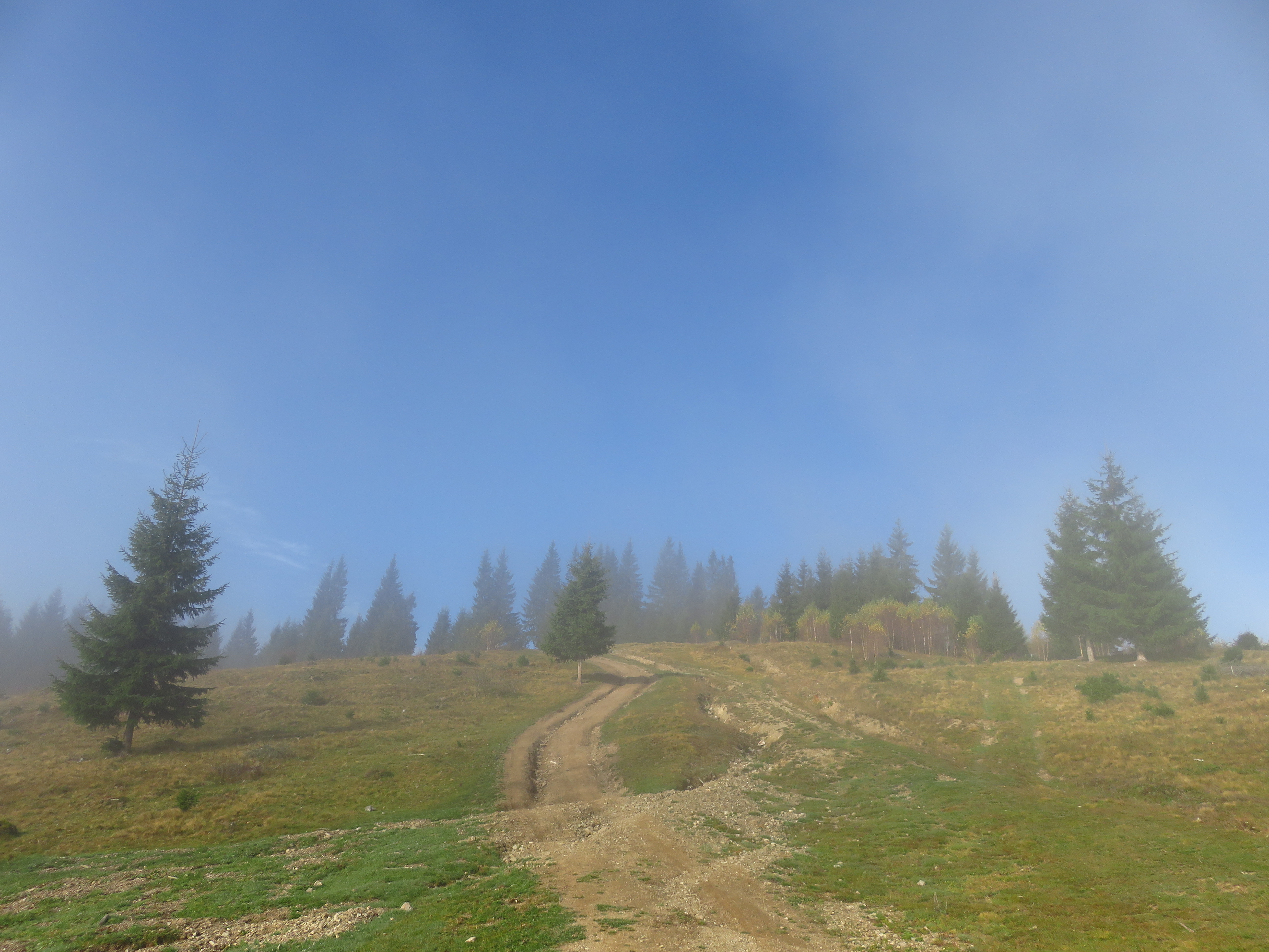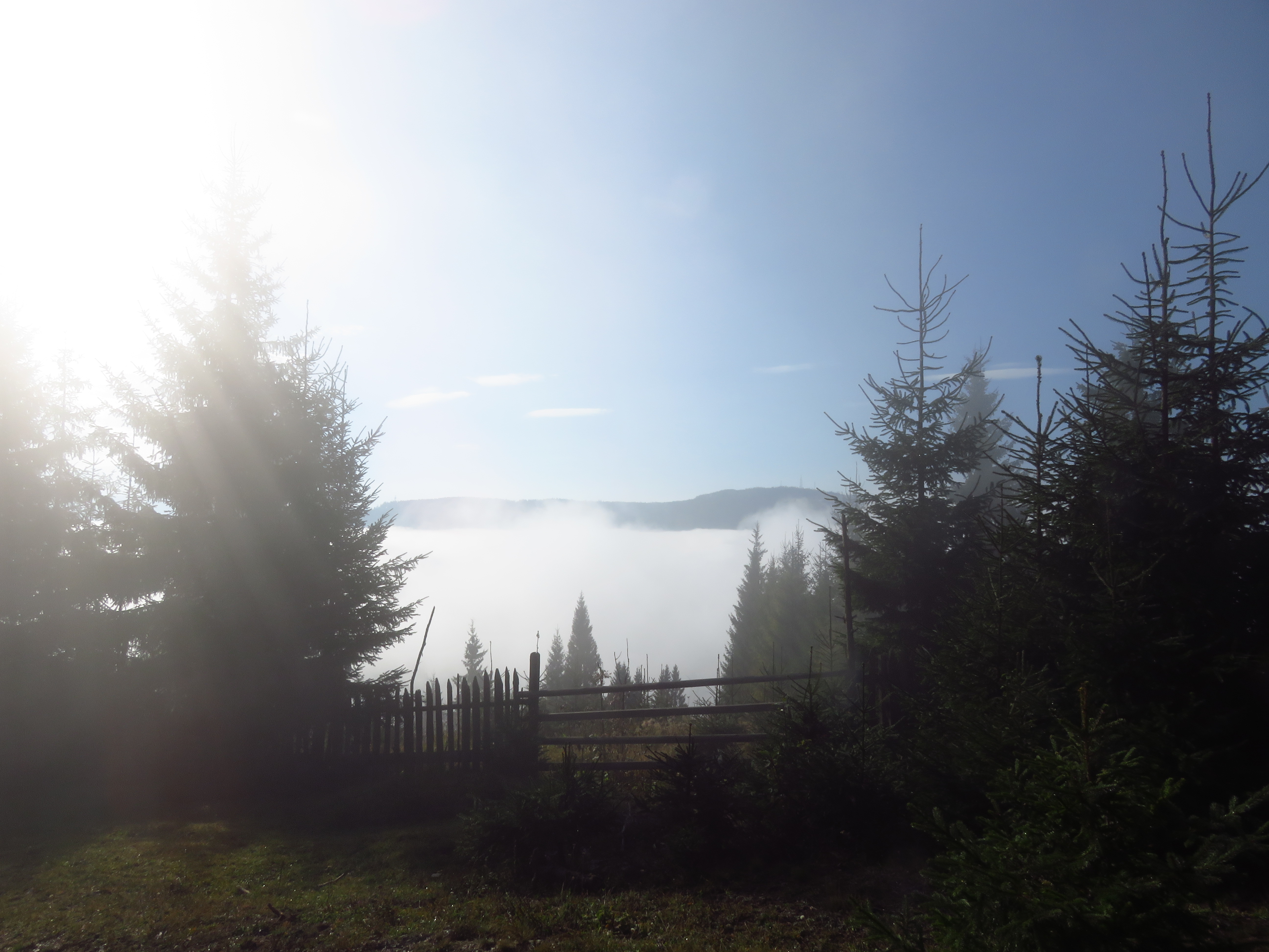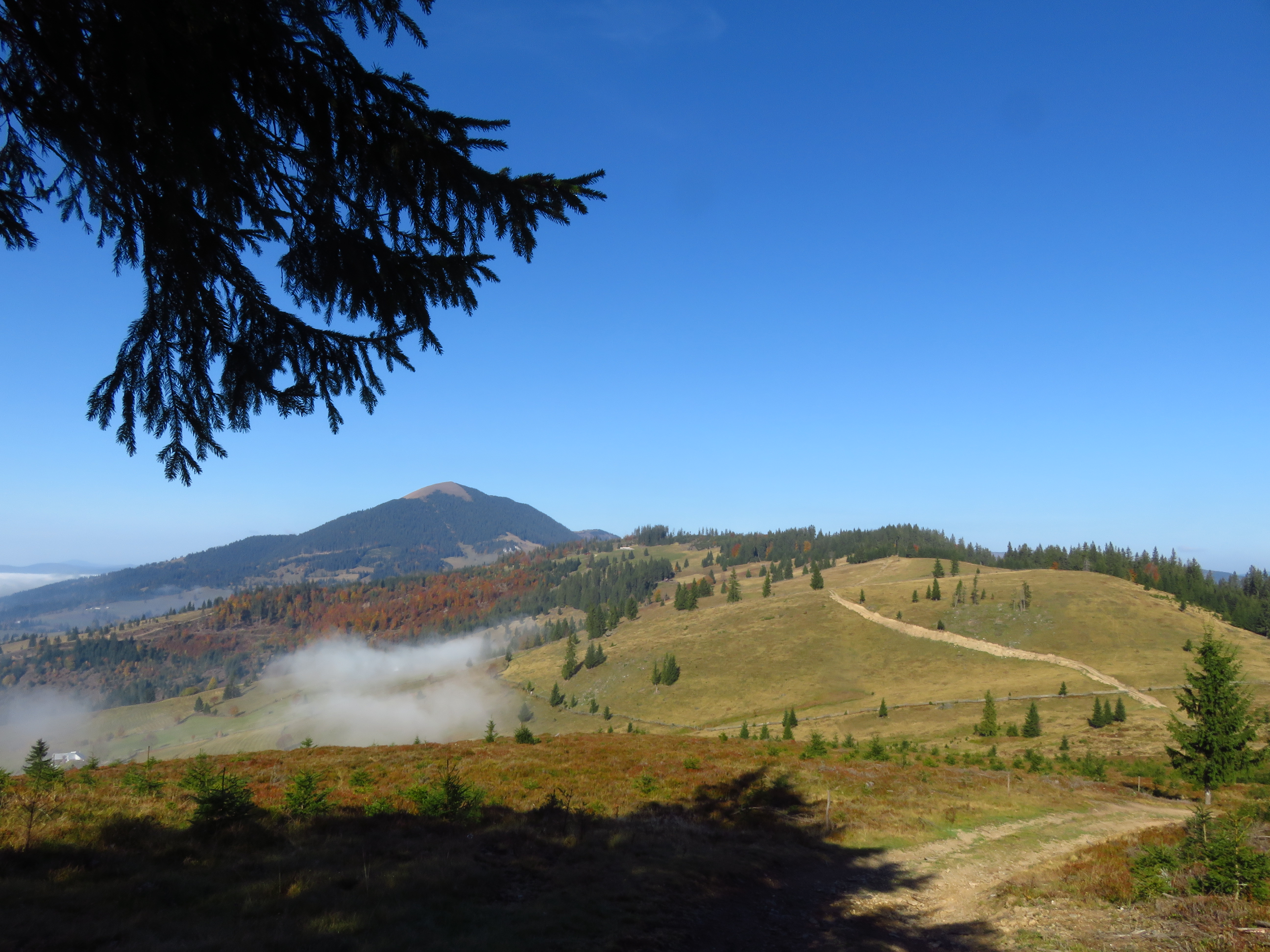 As I walked out of the forest and into a meadow, the clouds started lifting, revealing a glorious autumn landscape with mixed deciduous and coniferous trees. Meadows alternated with forest, distant mountains competed in a beauty contest with glimmering roofs in the nearby Dorna valley. As the sun beat the clouds to it, I felt joy bubbling up from my stomach. What a glorious day; what a glorious place. The trail was easy: the ascent was always gentle and most of the time I simply had to follow a cart track. It was a long trail too: I would have to cover about 50km in two days, but I didn’t mind that. It was a delight. Isn’t it strange how much I enjoy just placing one foot in front of the other? ‘To walk with grace and ease is all I want.’ That is a line I wrote ages ago, in near-perfect iambic pentameter – I used to think I should turn it into a sonnet one day, but perhaps it needs to stand on its own. Because that one line simply sums up what I desire most.