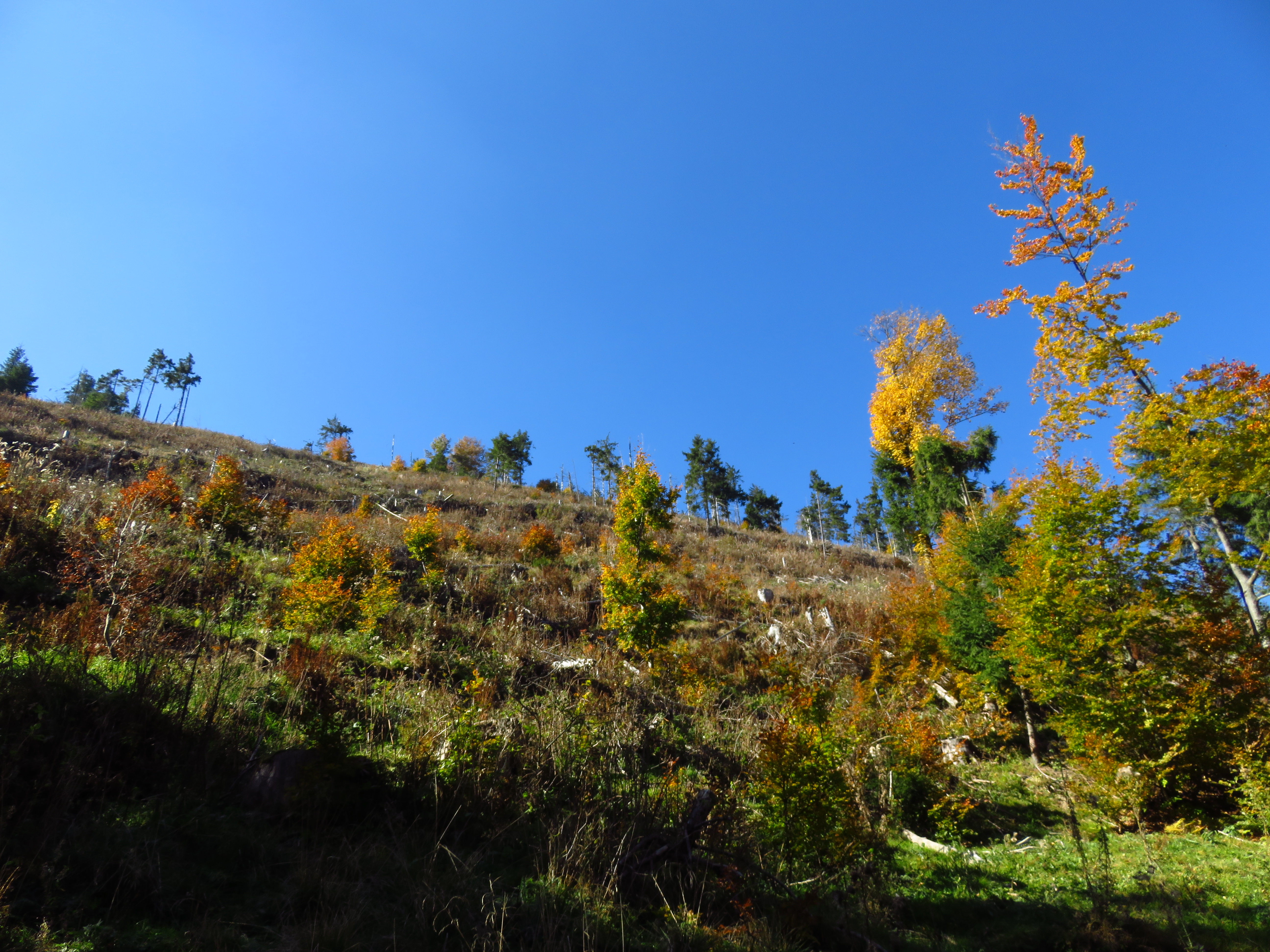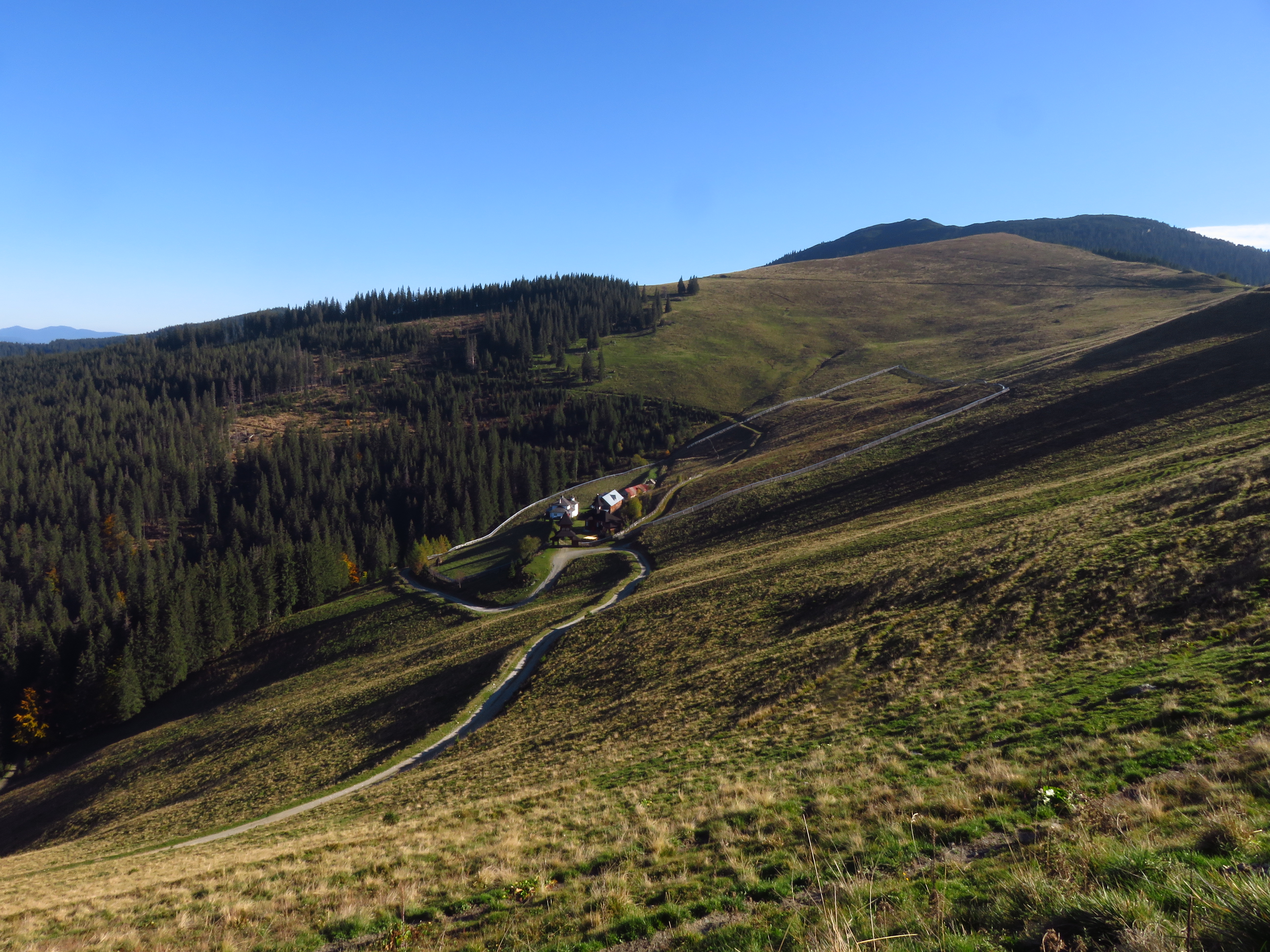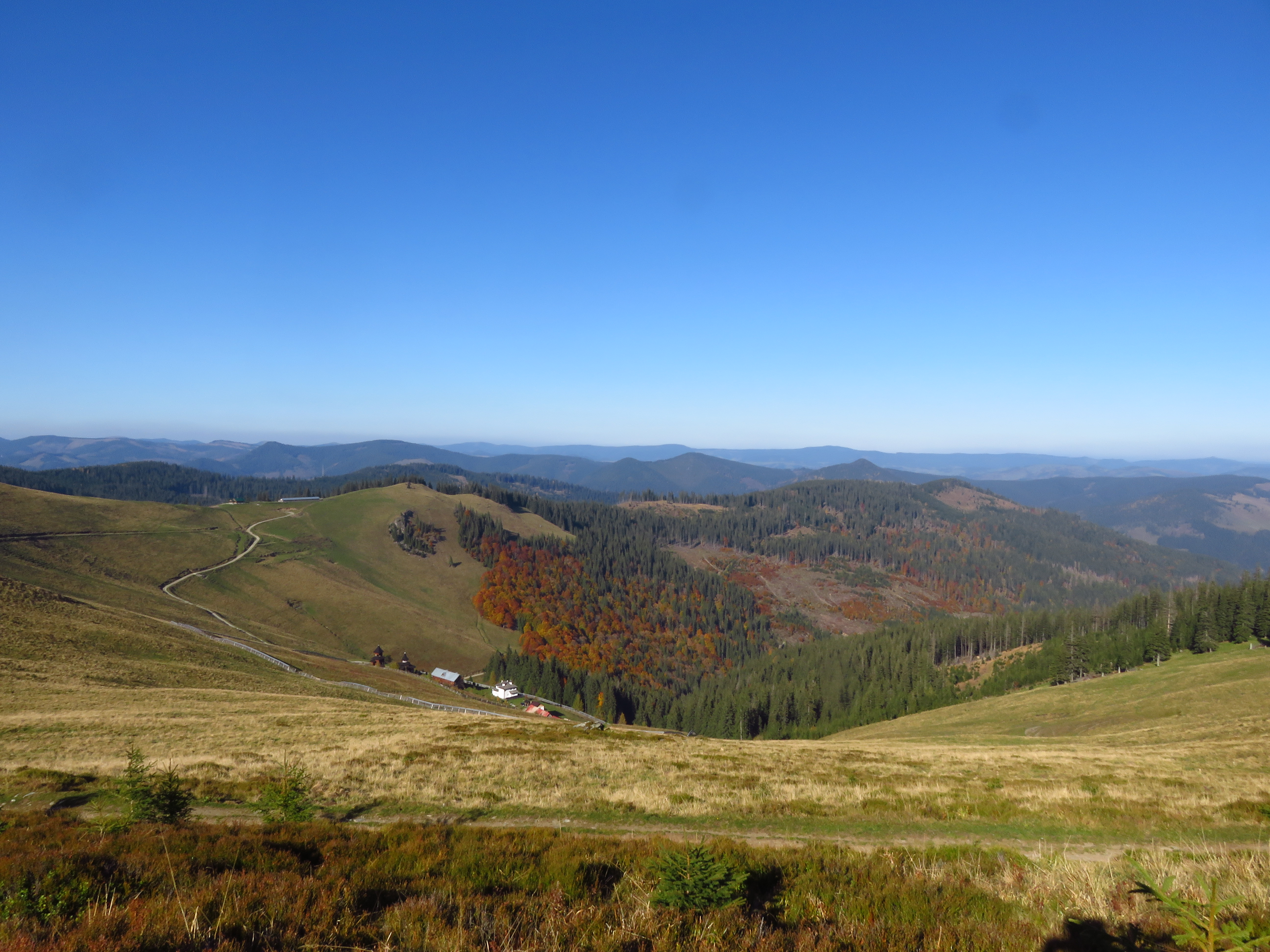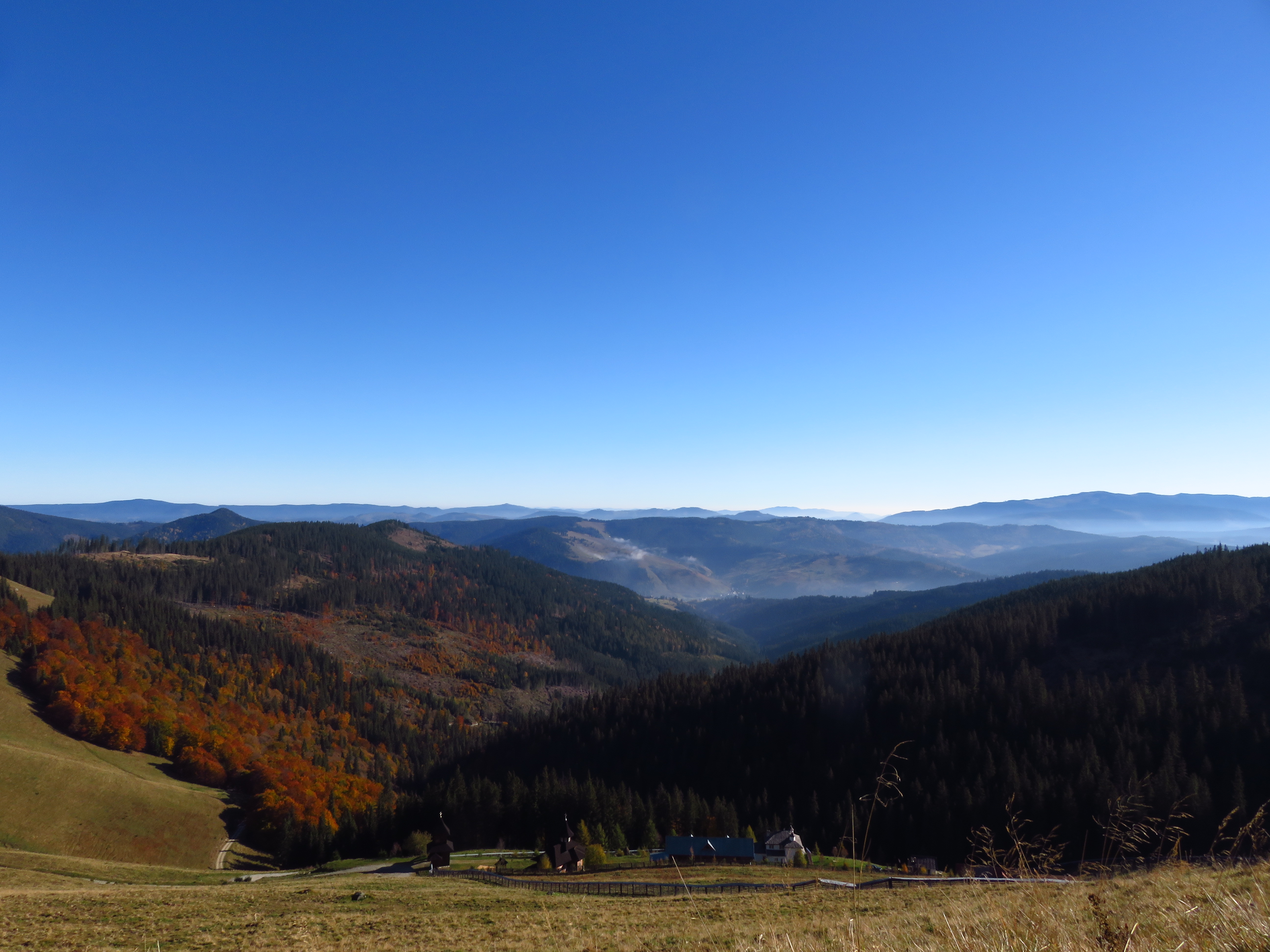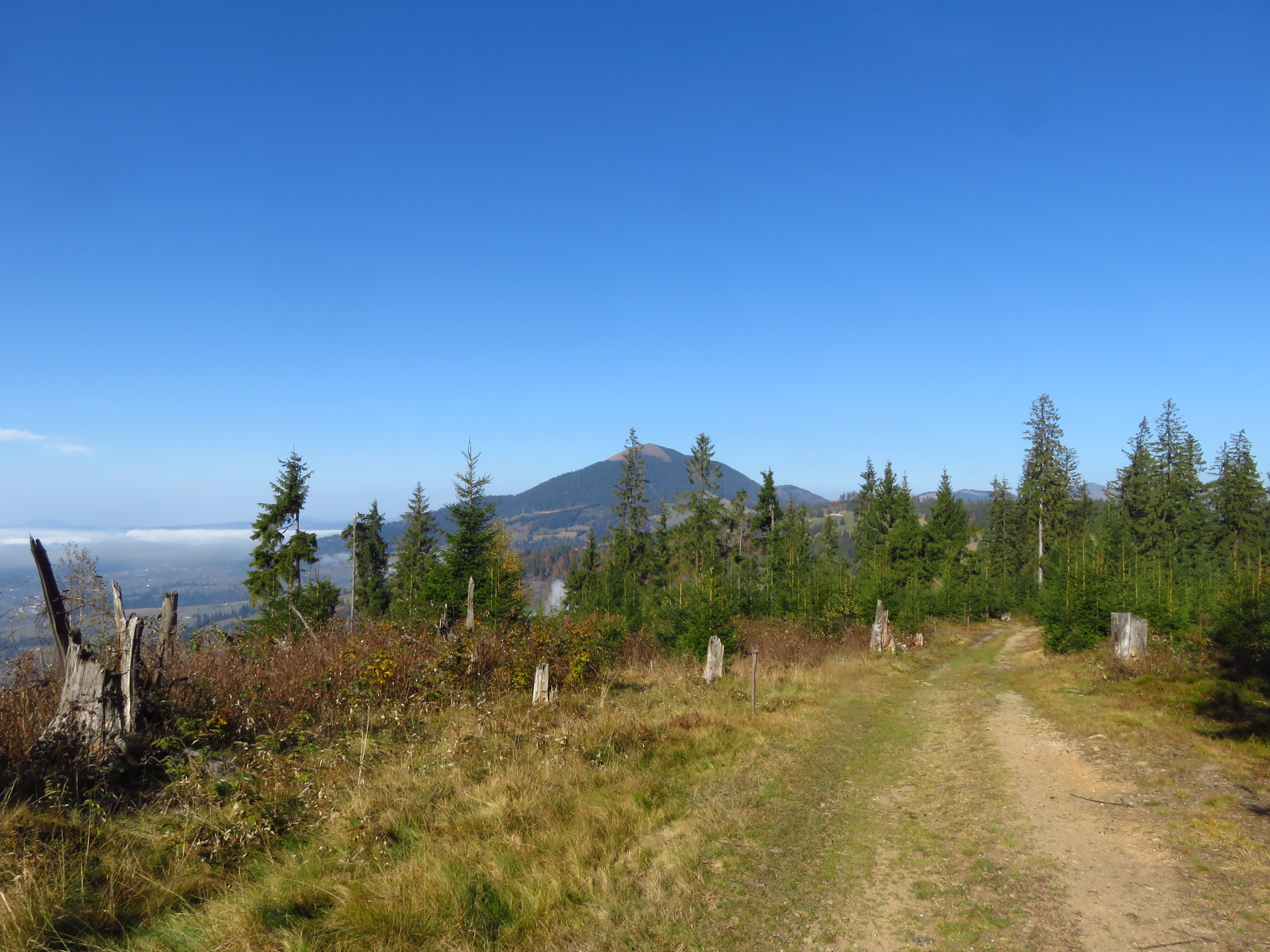 As I walked out of the forest and into a meadow, the clouds started lifting, revealing a glorious autumn landscape with mixed deciduous and coniferous trees. Meadows alternated with forest, distant mountains competed in a beauty contest with glimmering roofs in the nearby Dorna valley. As the sun beat the clouds to it, I felt joy bubbling up from my stomach. What a glorious day; what a glorious place. The trail was easy: the ascent was always gentle and most of the time I simply had to follow a cart track. It was a long trail too: I would have to cover about 50km in two days, but I didn’t mind that. It was a delight. Isn’t it strange how much I enjoy just placing one foot in front of the other? ‘To walk with grace and ease is all I want.’ That is a line I wrote ages ago, in near-perfect iambic pentameter – I used to think I should turn it into a sonnet one day, but perhaps it needs to stand on its own. Because that one line simply sums up what I desire most.