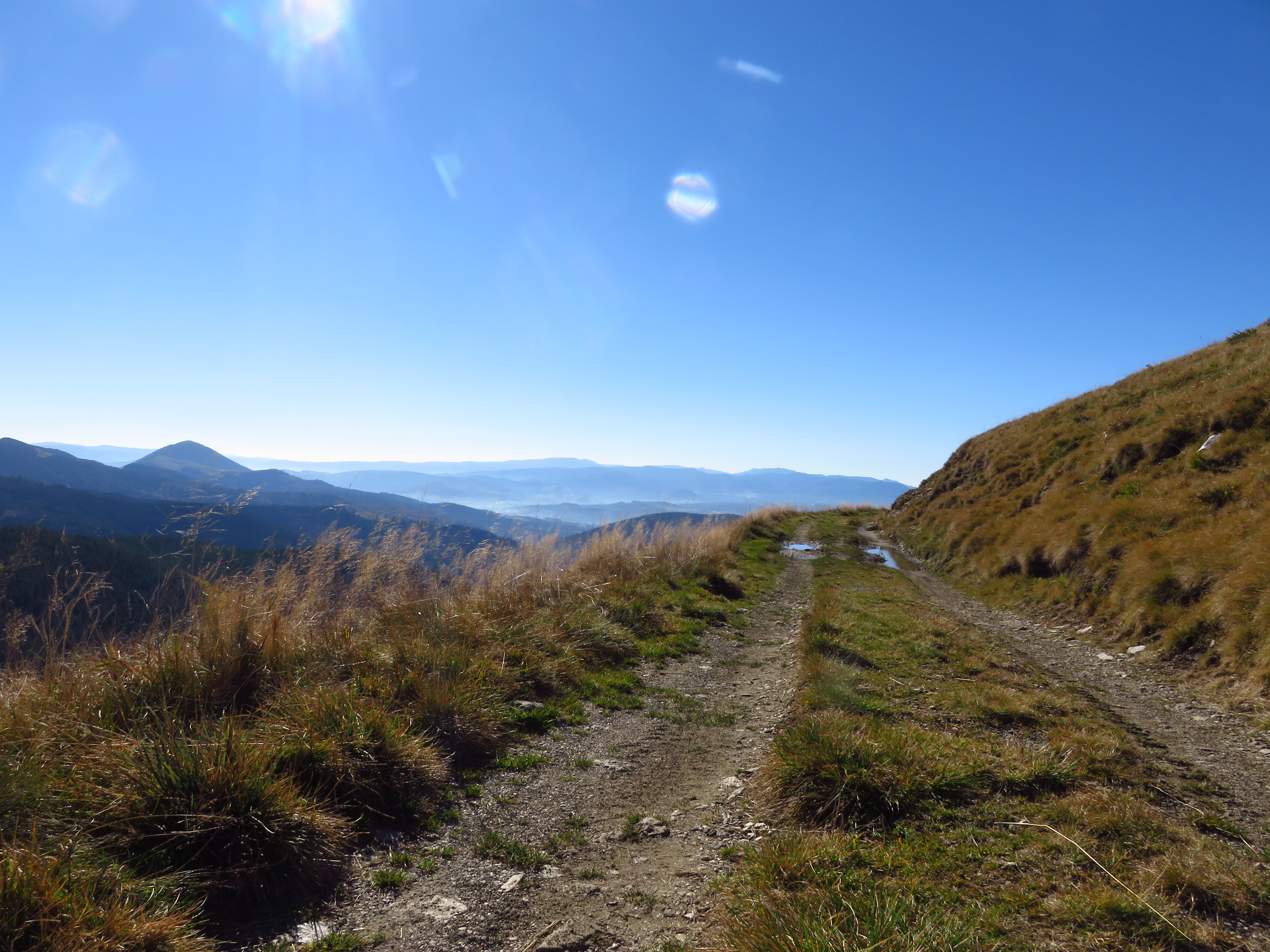 I’m going to fast-forward here and spare you all the details of the trail. I’ll let the pictures do the talking. Three encounters not shown in the pictures: a large red deer crossing my path. A bird of prey carrying a rabbit in its claws – silent drama. A shepherd scaring me shitless by suddenly approaching from behind – flock gone, but he was doing maintenance jobs and informed me he’d seen two large wolves earlier that morning. I also heard some snorting wild boars.